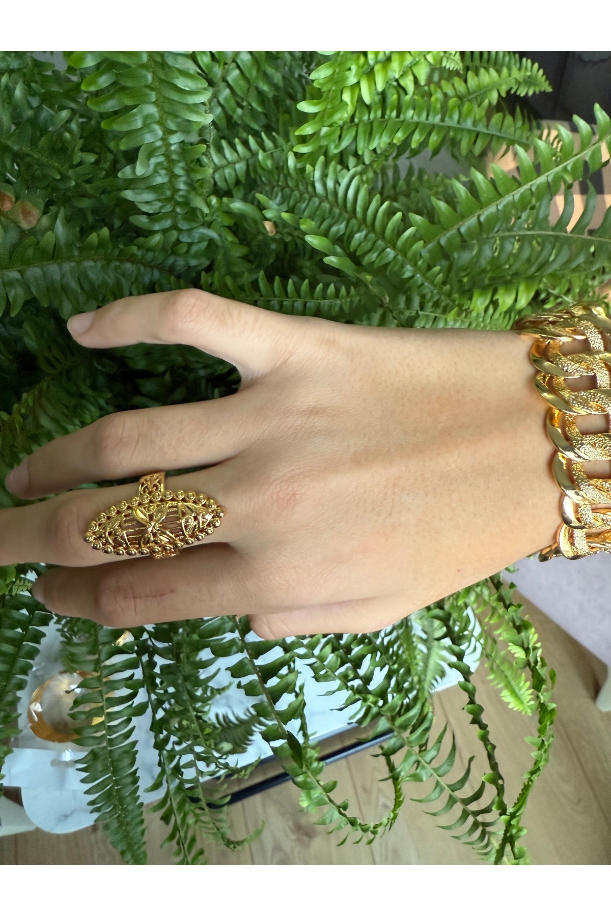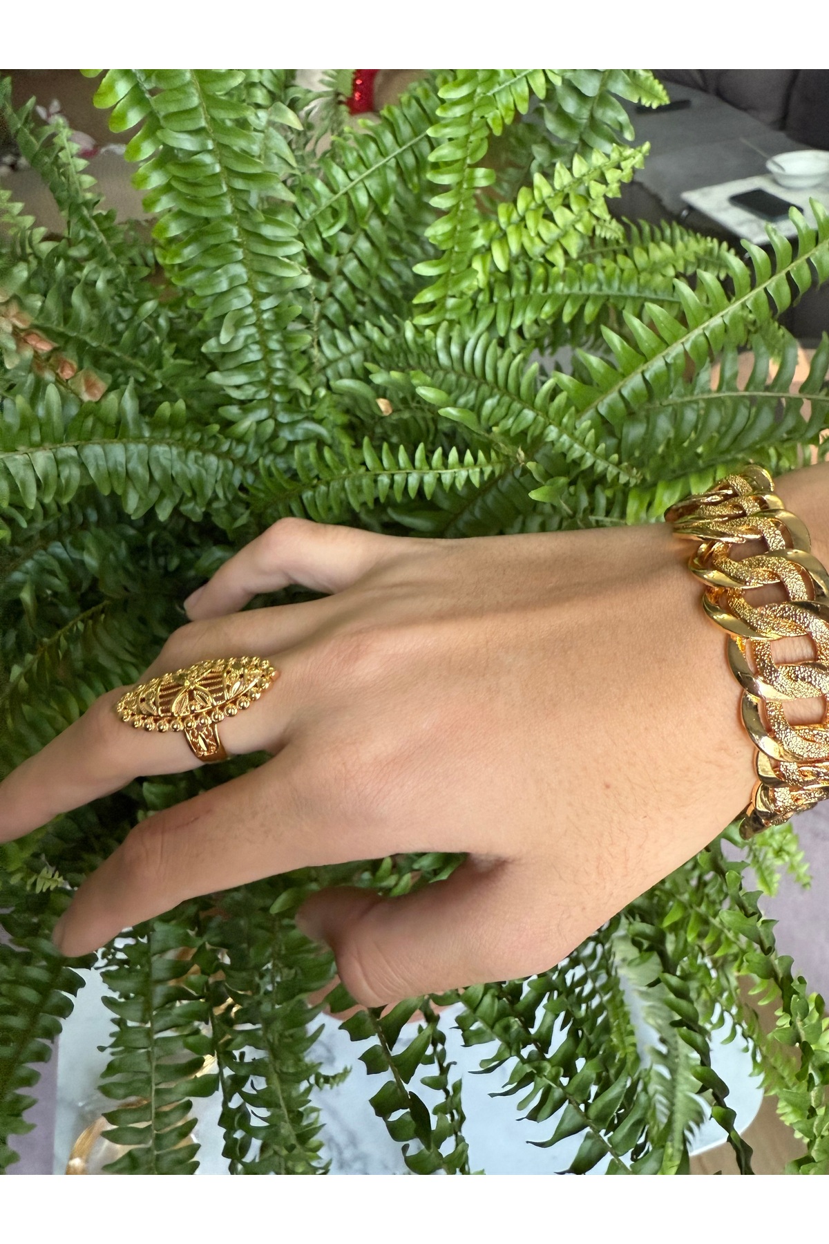 Blotch Altın Kaplama İmitasyon Bire bir 22 Ayar Altın İşçiliğinde Yüzük Ayarlanabilir