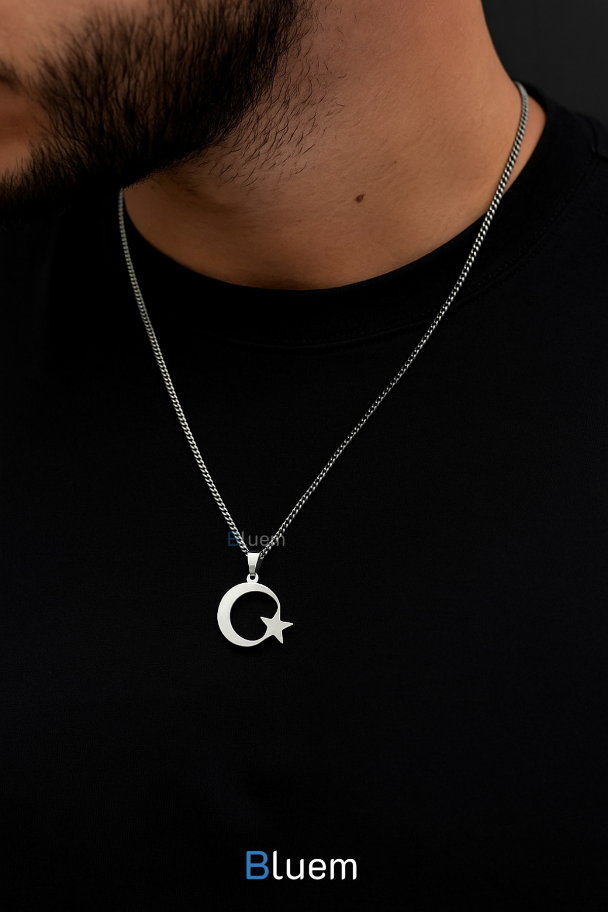 Bluem Ay Yıldız Türk Bayrağı Çelik Kolye – Kararmaz Çelik