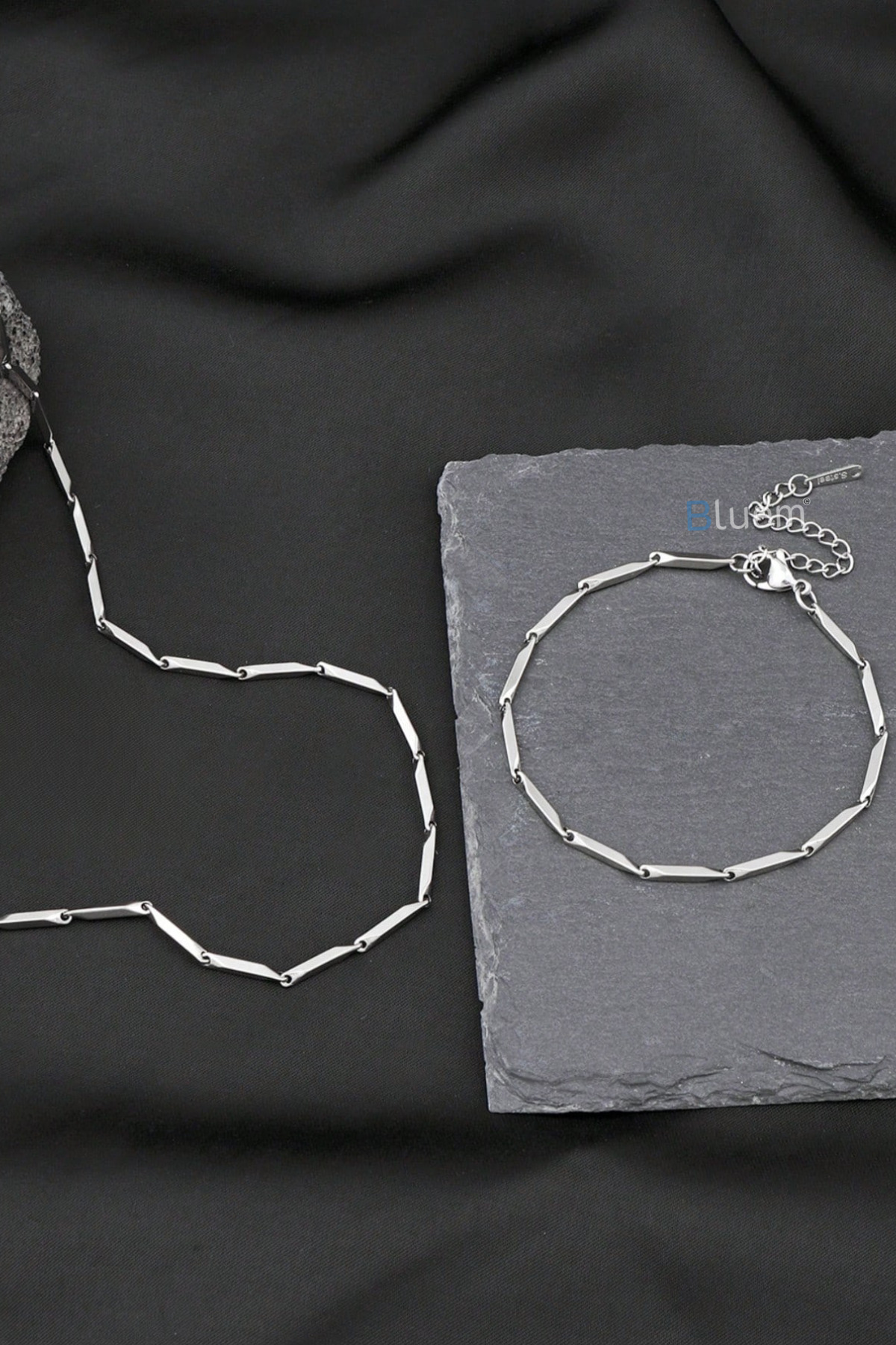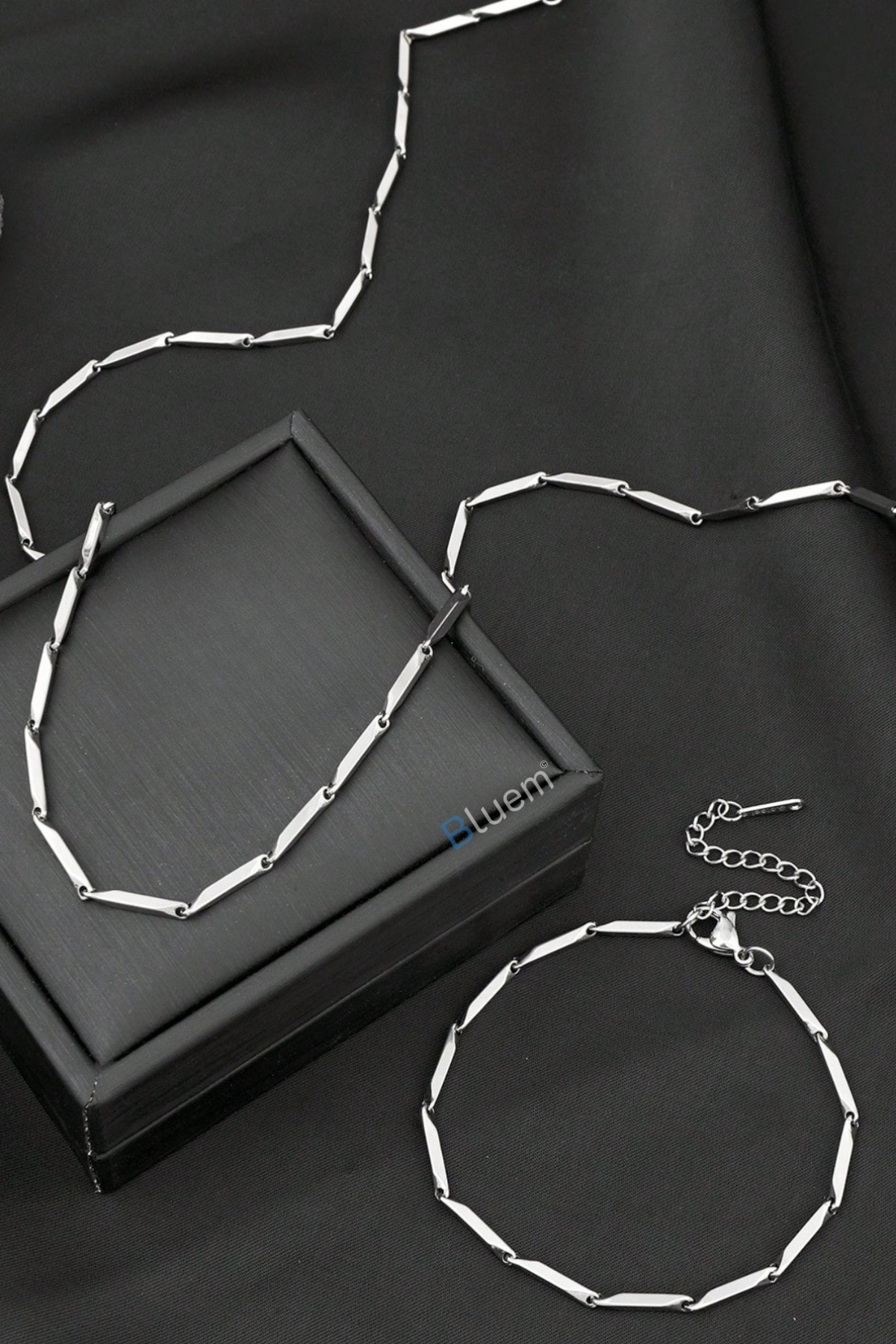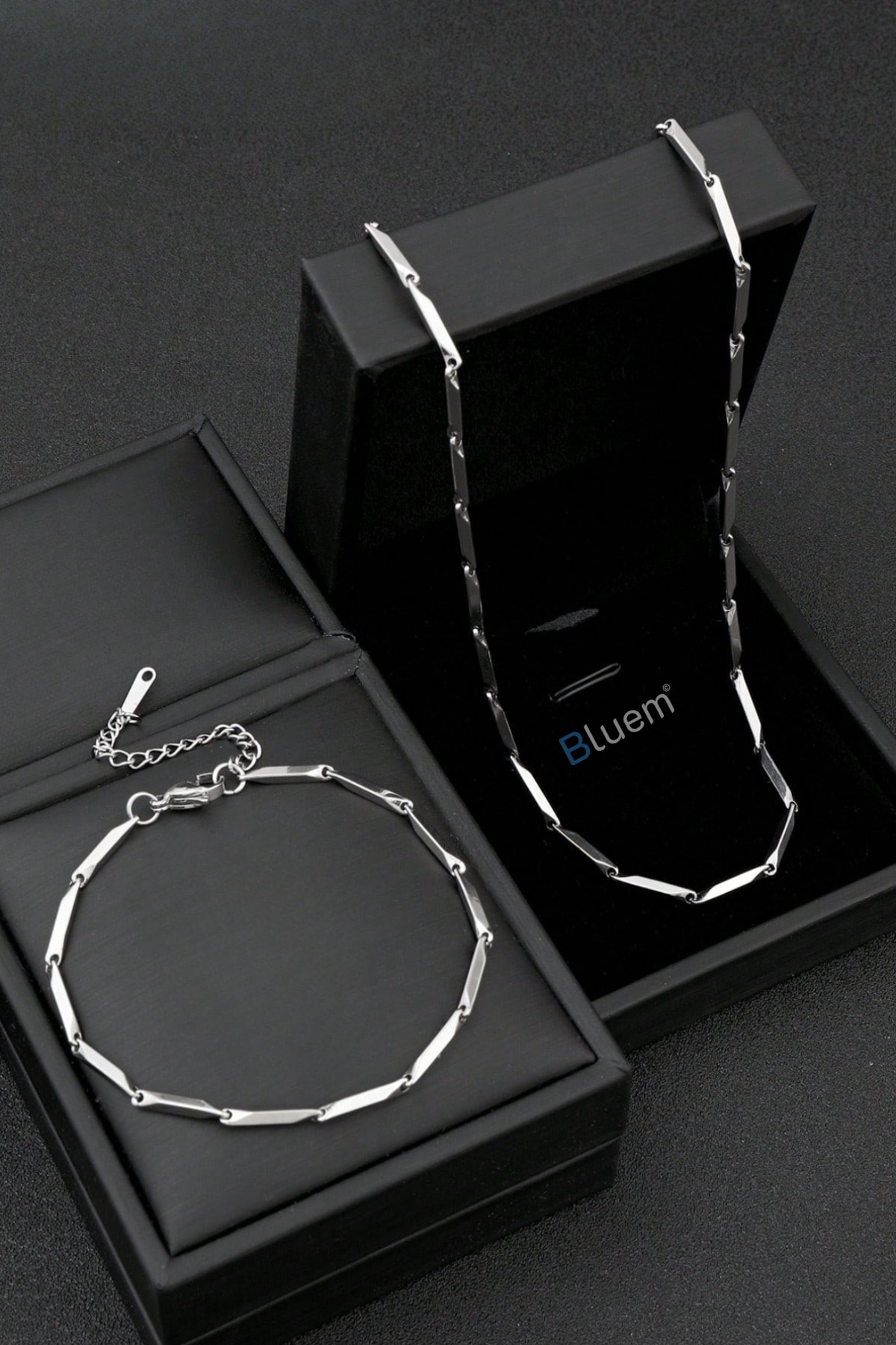Bluem Paslanmaz Çelik Erkek Zincir Bar Bileklik ve Kolye Seti – İthal Kararmaz Zincir Kolye