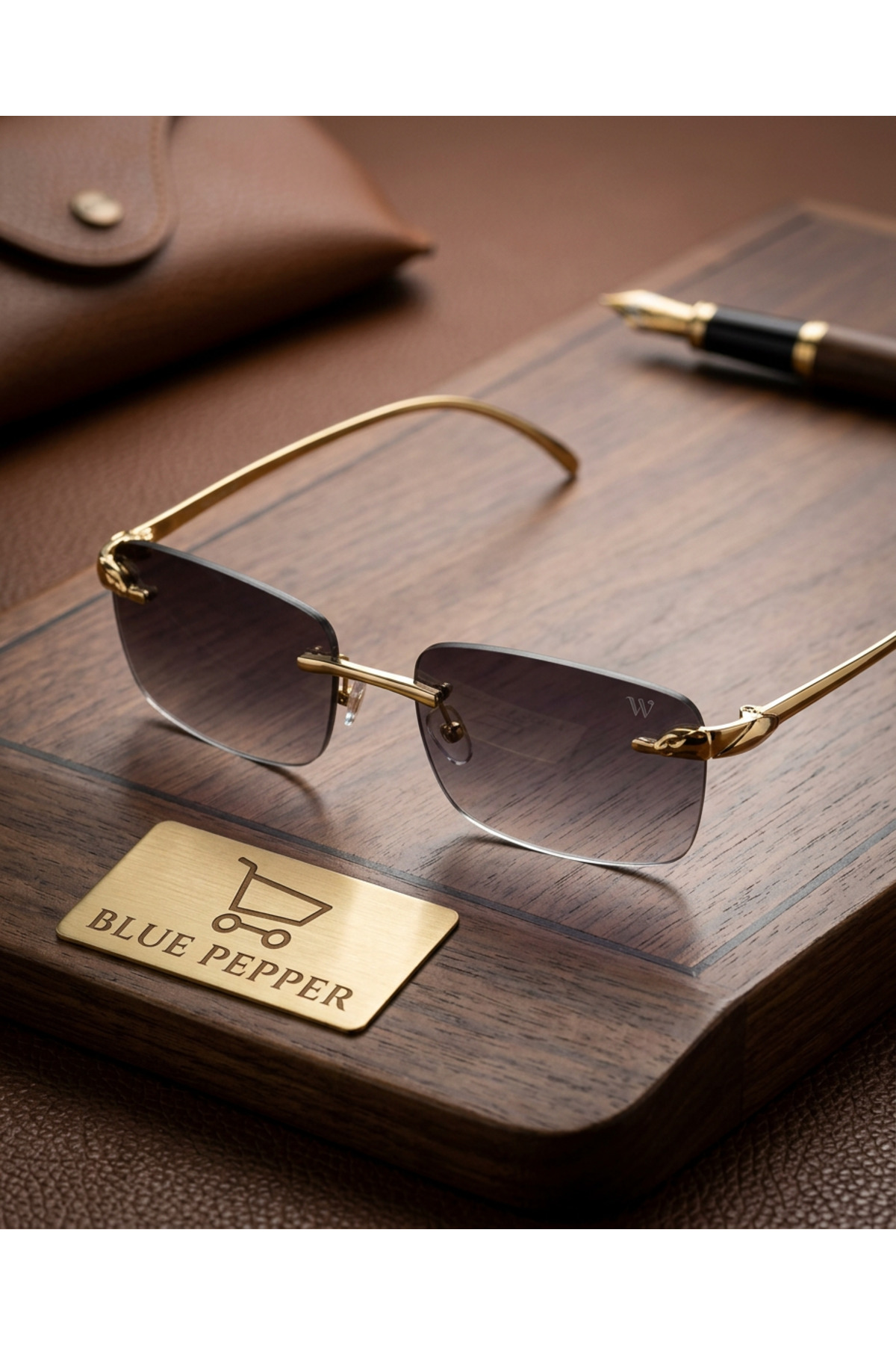 BluePepper CARTEL DİKDÖRTGEN DEGRADE SŞYAH CAMLI GOLD SAPLI MODERN TASARIMLI UNISEX GÜNEŞ GÖZLÜĞÜ