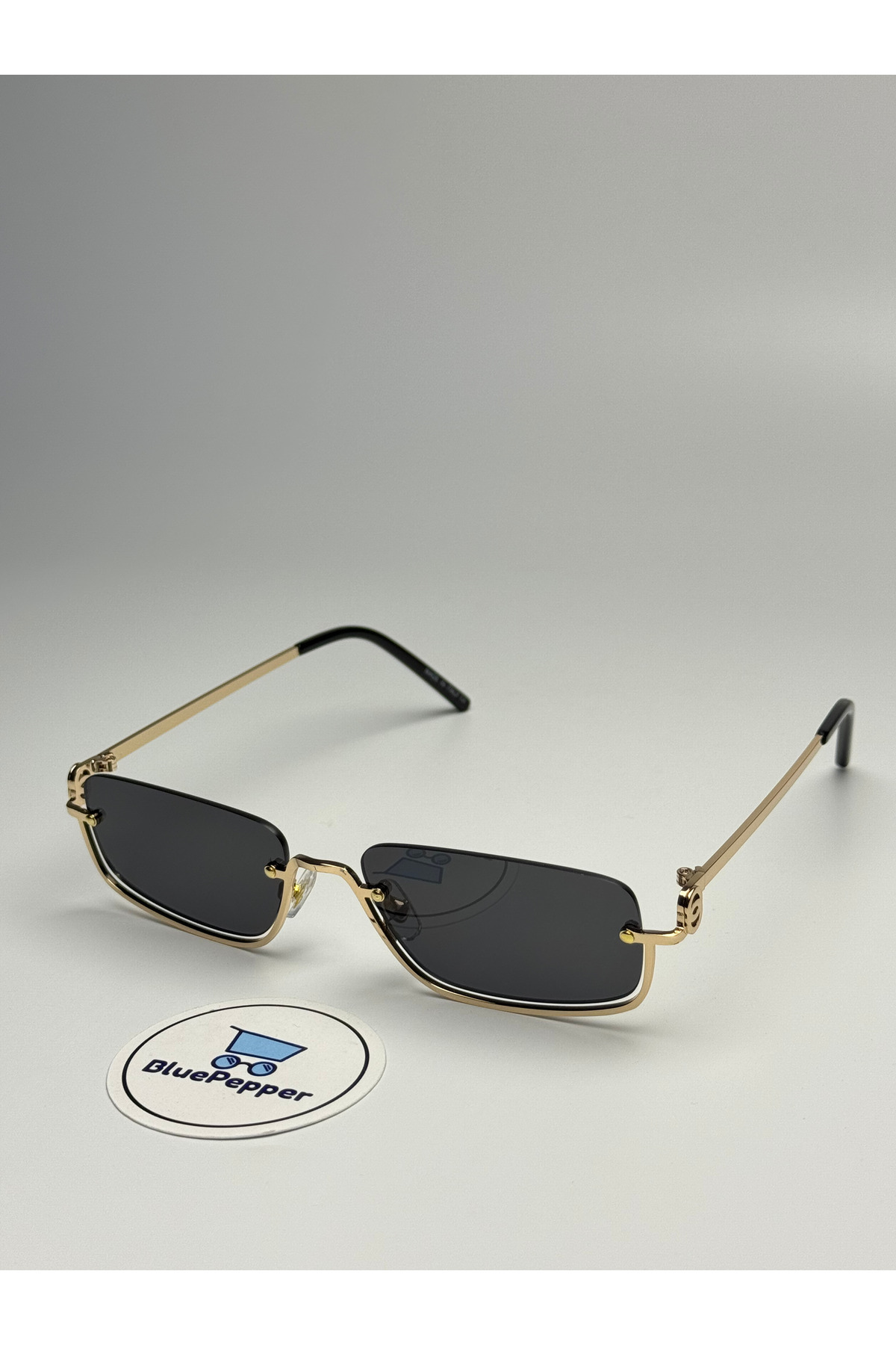 BluePepper GUPP V2 SİYAH GÜNEŞ GÖZLÜĞÜ Dikdörtgen Gold Çerçeve 55-17-140 ekartman