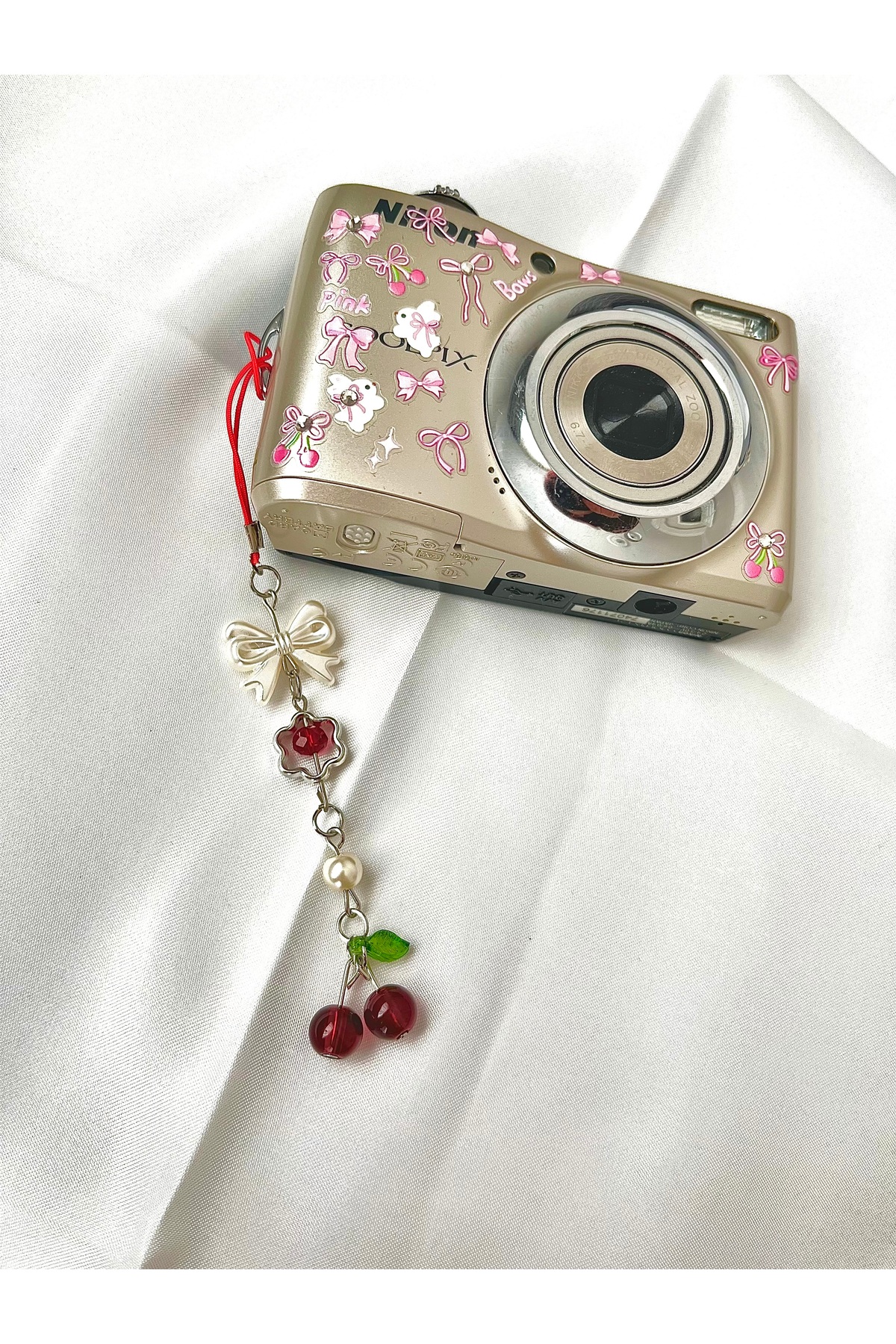 bohemian takı tasarim Kirazlı Coquette Telefon Charmı Kamera Charmı ürünü ucuz fiyat, hızlı kargo imkanı ile hemen sitemizden sipariş verin.
