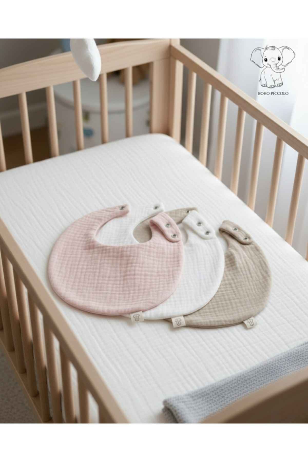 Boho Piccolo Oval 3’lü %100 Pamuk Müslin Bebek Önlüğü / Yakalık / Salya Önlüğü