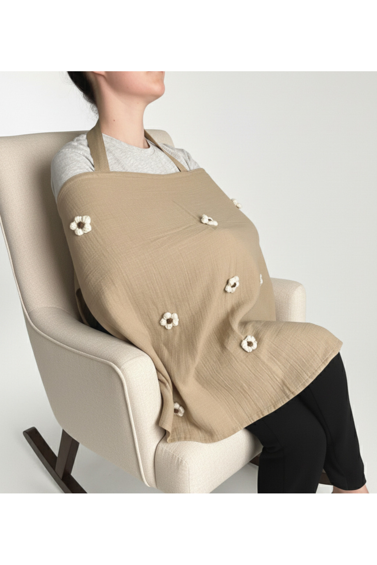 Bond and Bestie Müslin Emzirme Örtüsü Ayarlanabilir Askılı, Sırt Kısmı Lastikli, %100 Pamuk Müslin, Çiçek Desenli