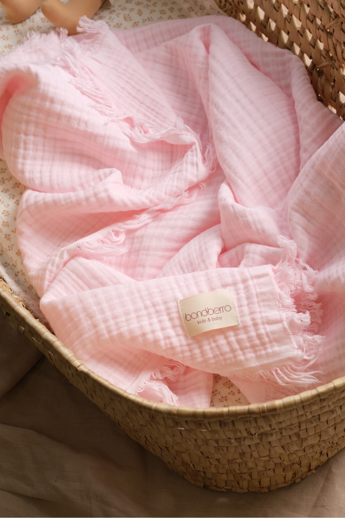 Bondberro Müslin Örtü & Battaniye 4 Katlı Saçaklı %100 Pamuk Organik Oeko-teks Sertifikalı 120 X 100 Cm