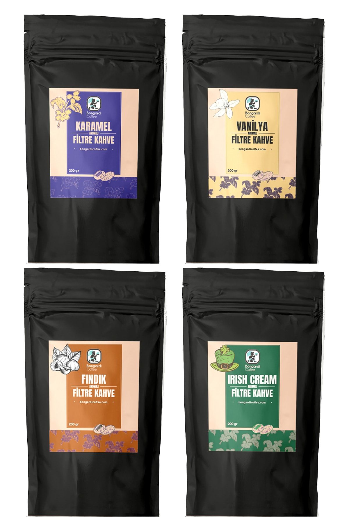 Bongardi Coffee Fındık Karamel Vanilya Irish Cream Aromalı Filtre Kahve Seti 4x200g (ÖĞÜTÜLMÜŞ)