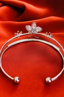 Bonicce Çiçekli Zirkon Taşlı Su Yolu 2li Kadın Çelik Kelepçe Bileklik Paslanmaz