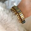 Bonicce Marka Retro Model, Minimal Oval Kasa,gümüş/sarı Kordon,roma Rakamlı Kadın Kolsaati Bileklik