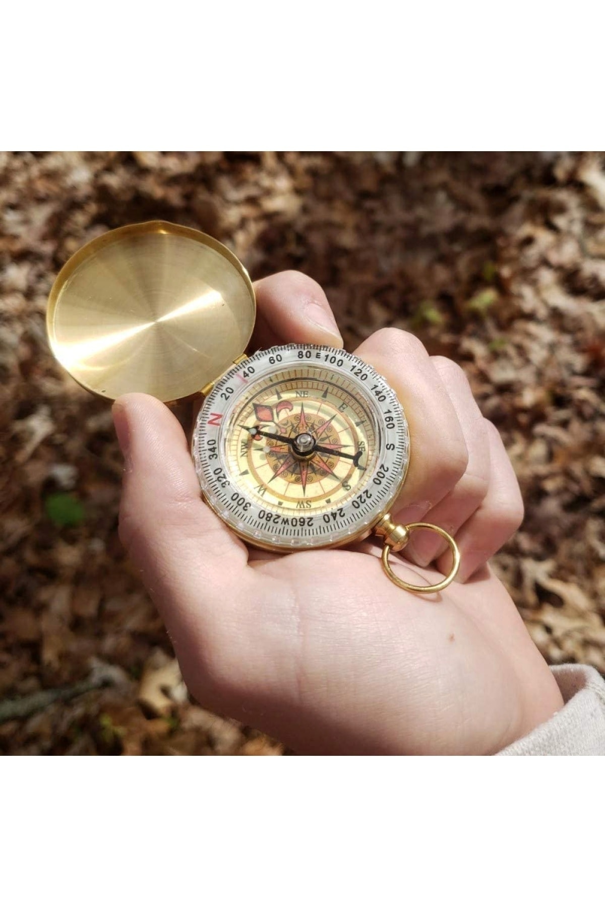 Bosile Yuvarlak Sarı Metal Kasa Kutulu Su Geçirmez Fosforlu Dayanıklı Pusula 5×1.6cm