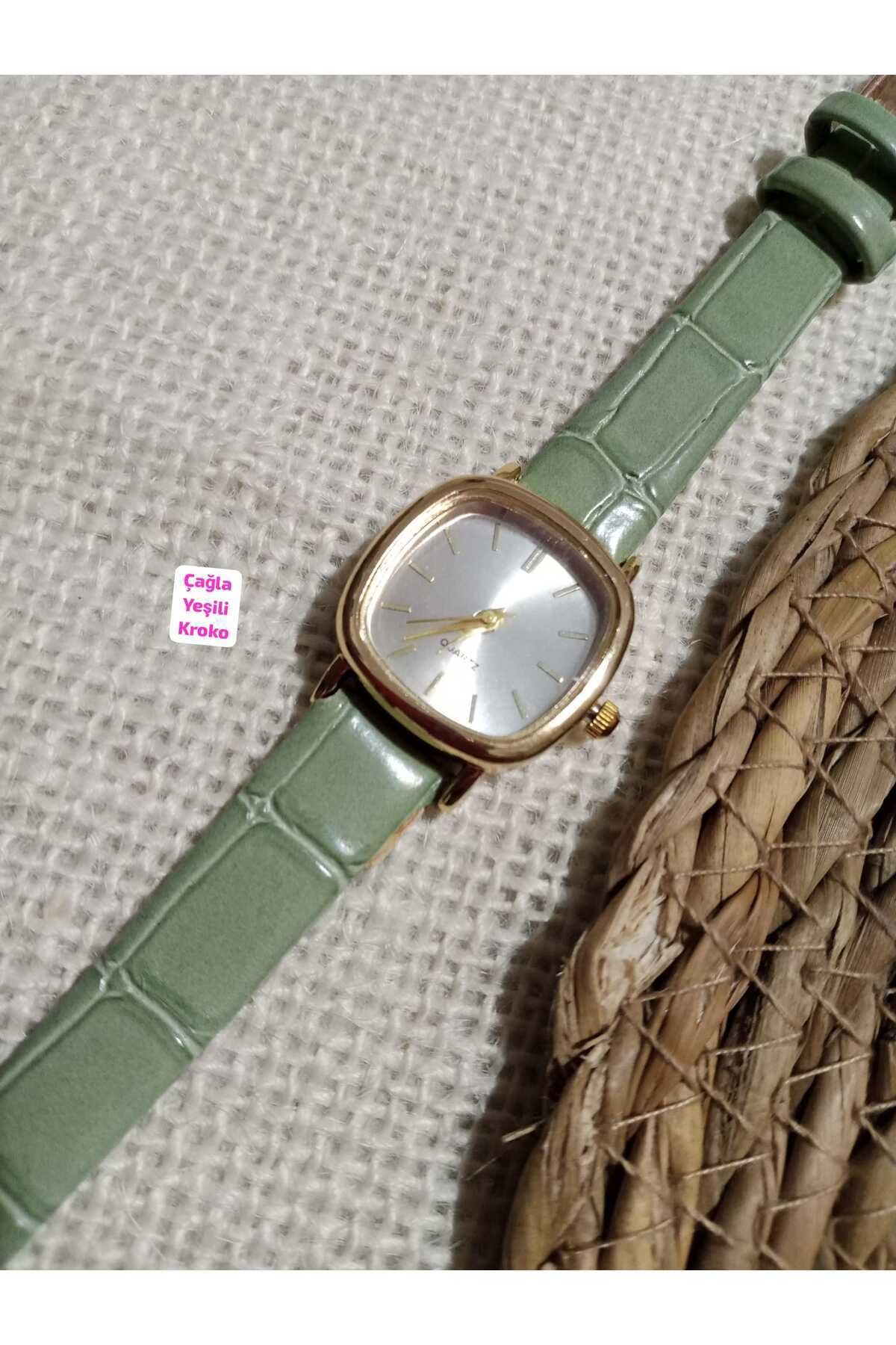 Brality Minimal Vintage Retro Kadın Kol Saat … Çağla Yeşili Kordonlu Kombin Saat – 0021