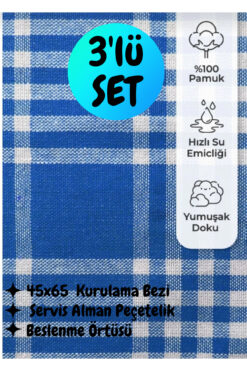 BRE HOME 3 Adet Mutfak Seti: Servis, Alman Peçetelik, Beslenme Örtüsü, Kurulama Bezi 45×65