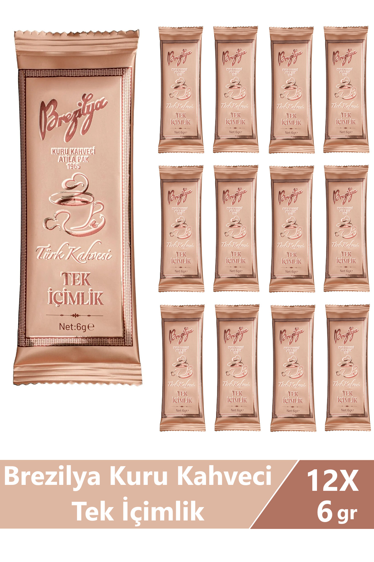 Brezilya Kuru Kahveci Atilla Pak Orta Kavrulmuş Meşhur Denizli Türk Kahvesi Tek İçim 6 gr x 12 Adet