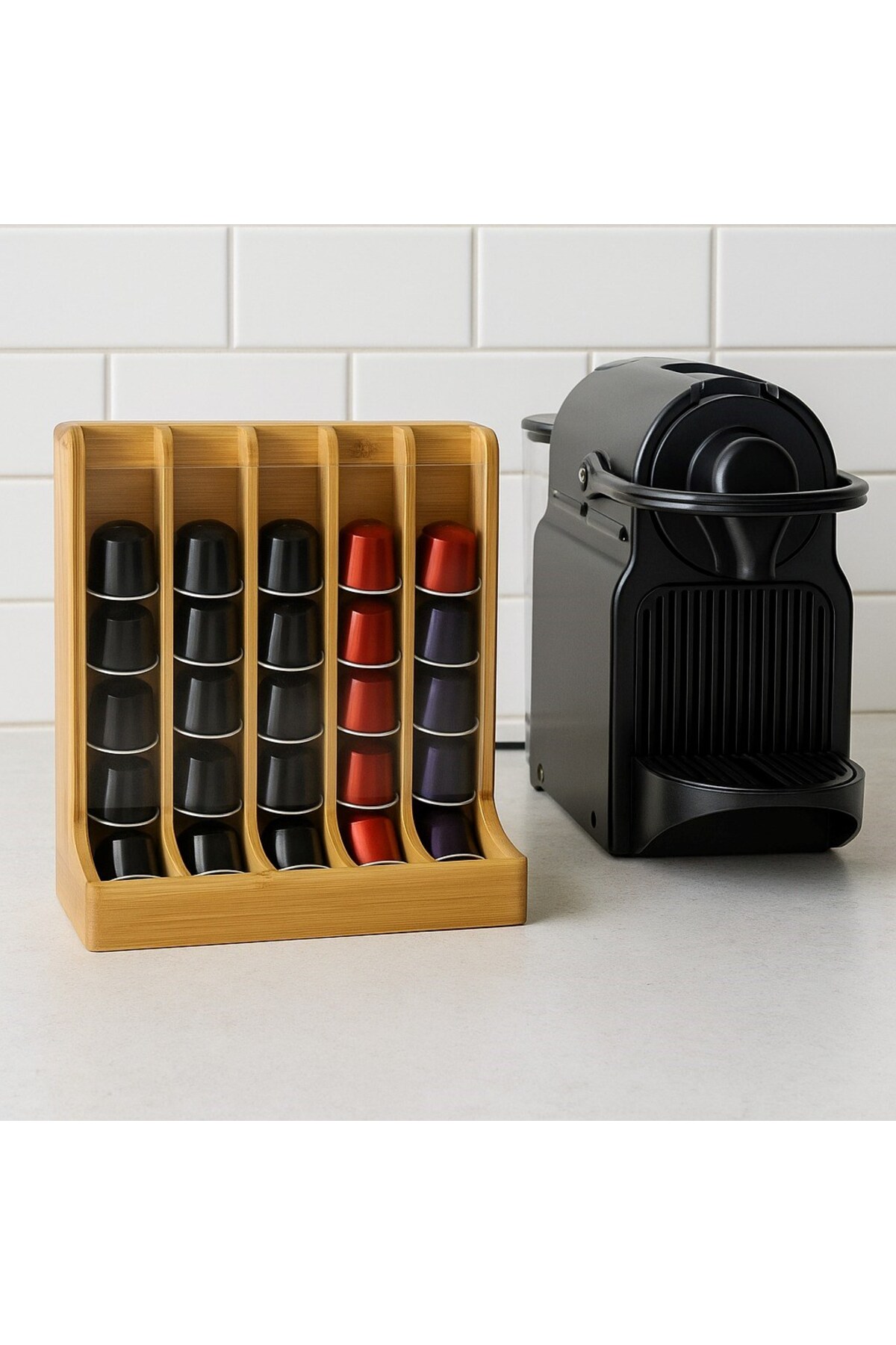Brillant Doğal Bambu Kapsül Kahve Standı – 40’lı Nespresso Uyumlu Kapsül Düzenleyici Raf BR-6716
