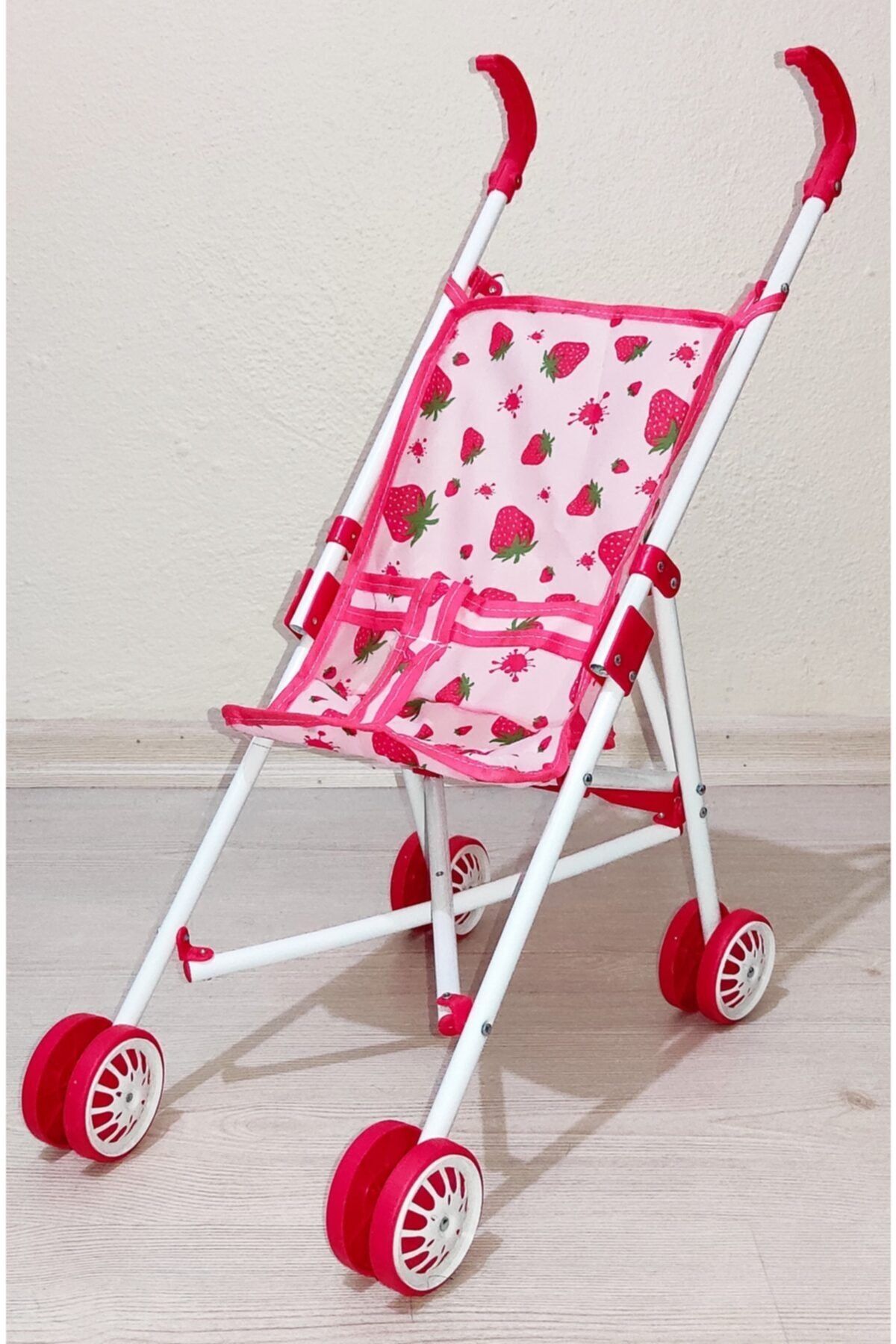 Brother Toys Çilek Desenli Oyuncak Metal Puset Baston Bebek Arabası Kırmızı-beyaz Desenli