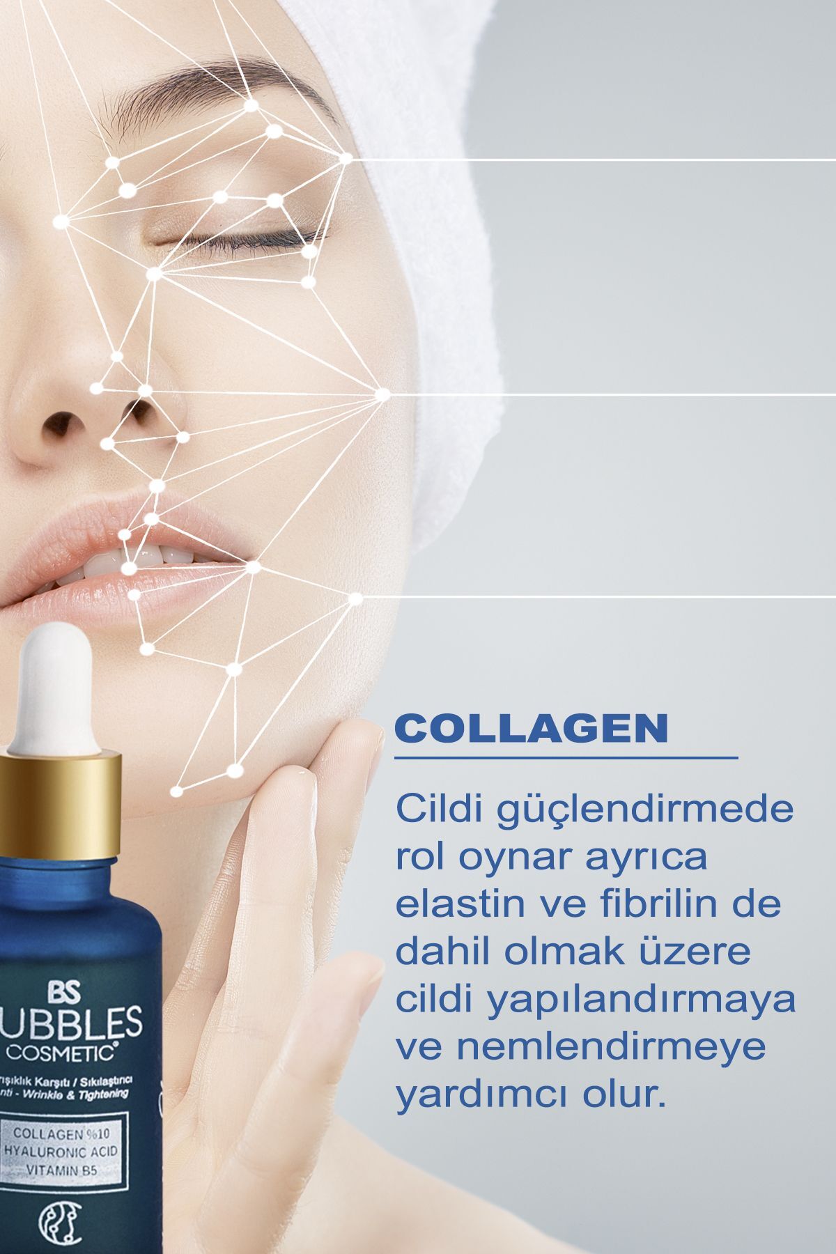 bs bubbles cosmetic Kolajen Collagen Serum Yaşlanma Ve Kırışıklık Karşıtı Sıkılaştırıcı Hyaluronic &vitaminb5