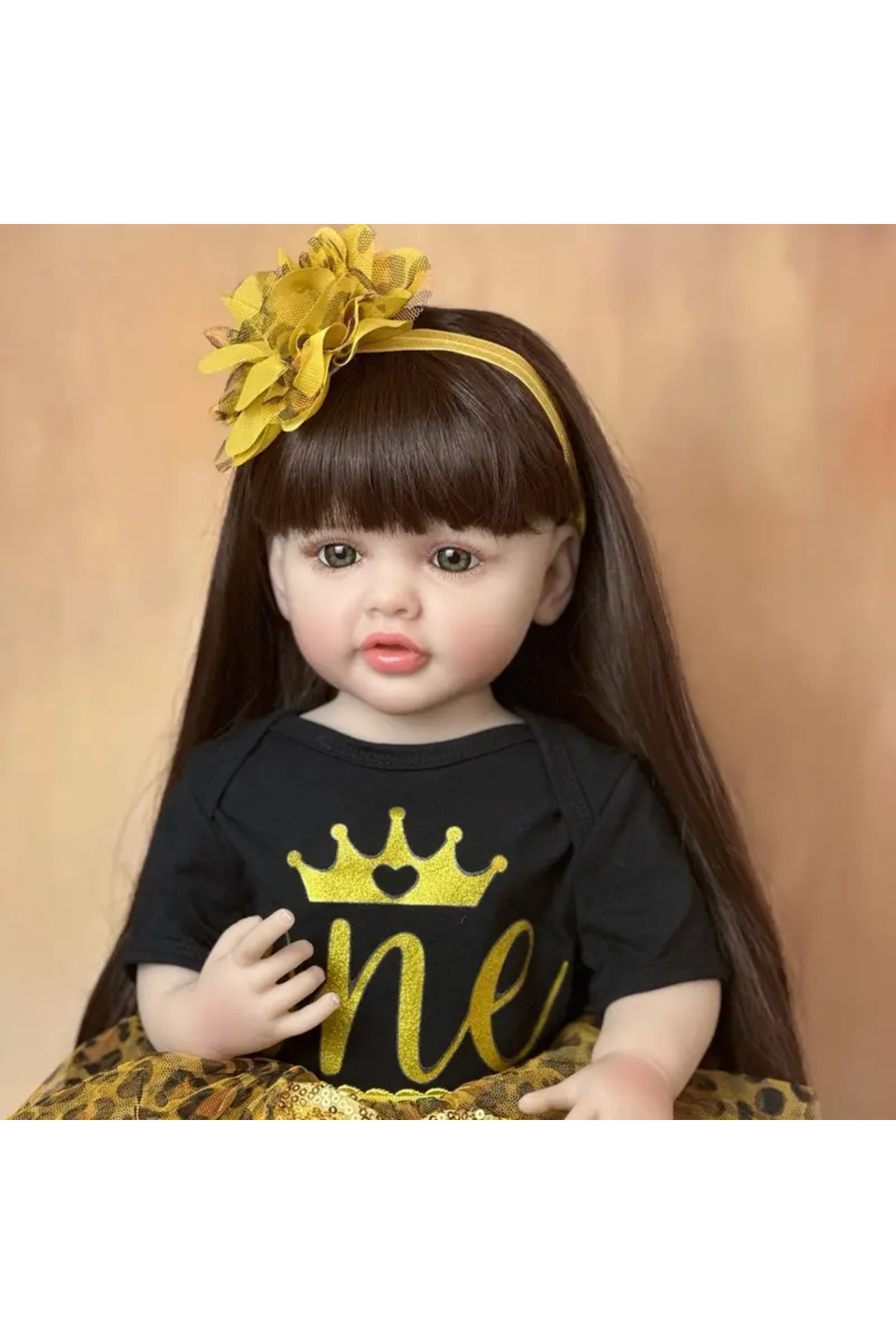 Buldug Gerçekçi Oyuncak Bebek 55 cm – Kahverengi Saçlı, Kahverengi Kıyafetli
