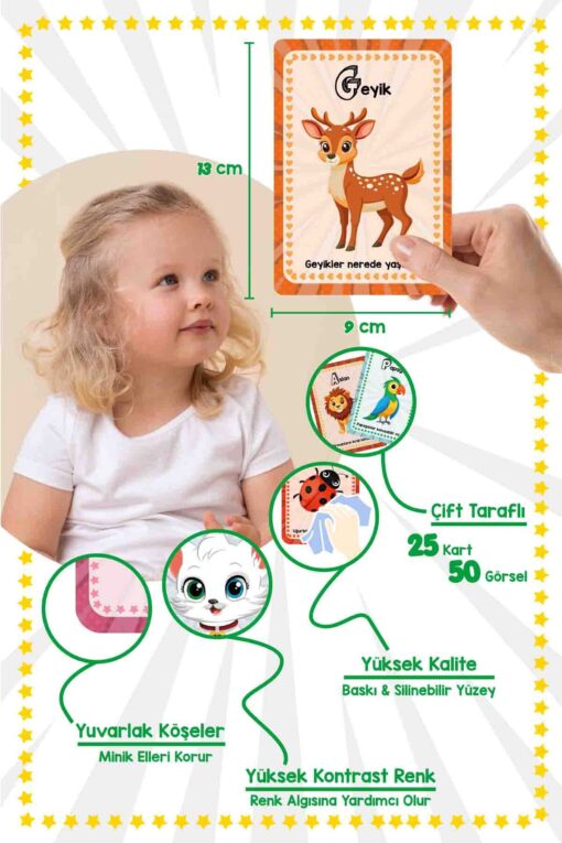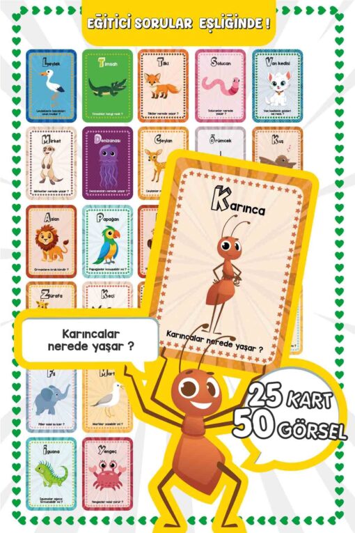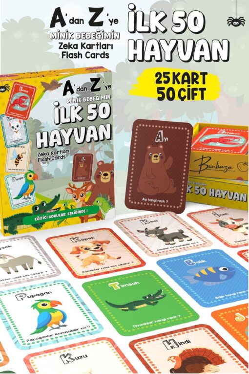 Bunbaza A’dan Z’ye Minik Bebeğimin İlk 50 Hayvanı Zeka Kartı Flash Kart 25 Kart – 50 Hayvan