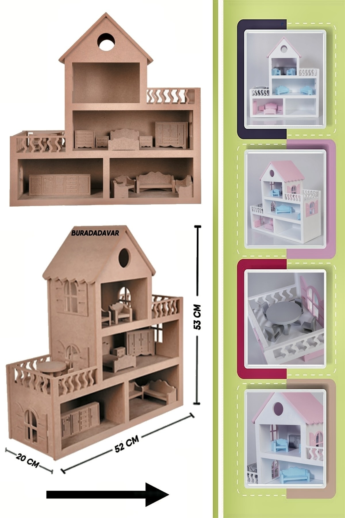 Buradadavar Hobi Ahşap Barbie Bebek Evi Oyuncak (15 ADET MOBİLYALI) ürünü ucuz fiyat, hızlı kargo imkanı ile hemen sitemizden sipariş verin.