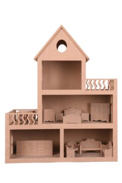 Buradadavar Hobi Ahşap Barbie Bebek Evi Oyuncak (15 ADET MOBİLYALI)