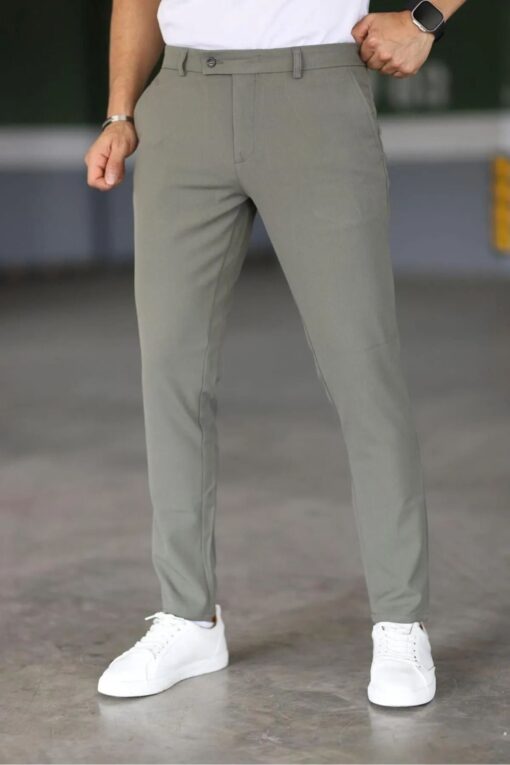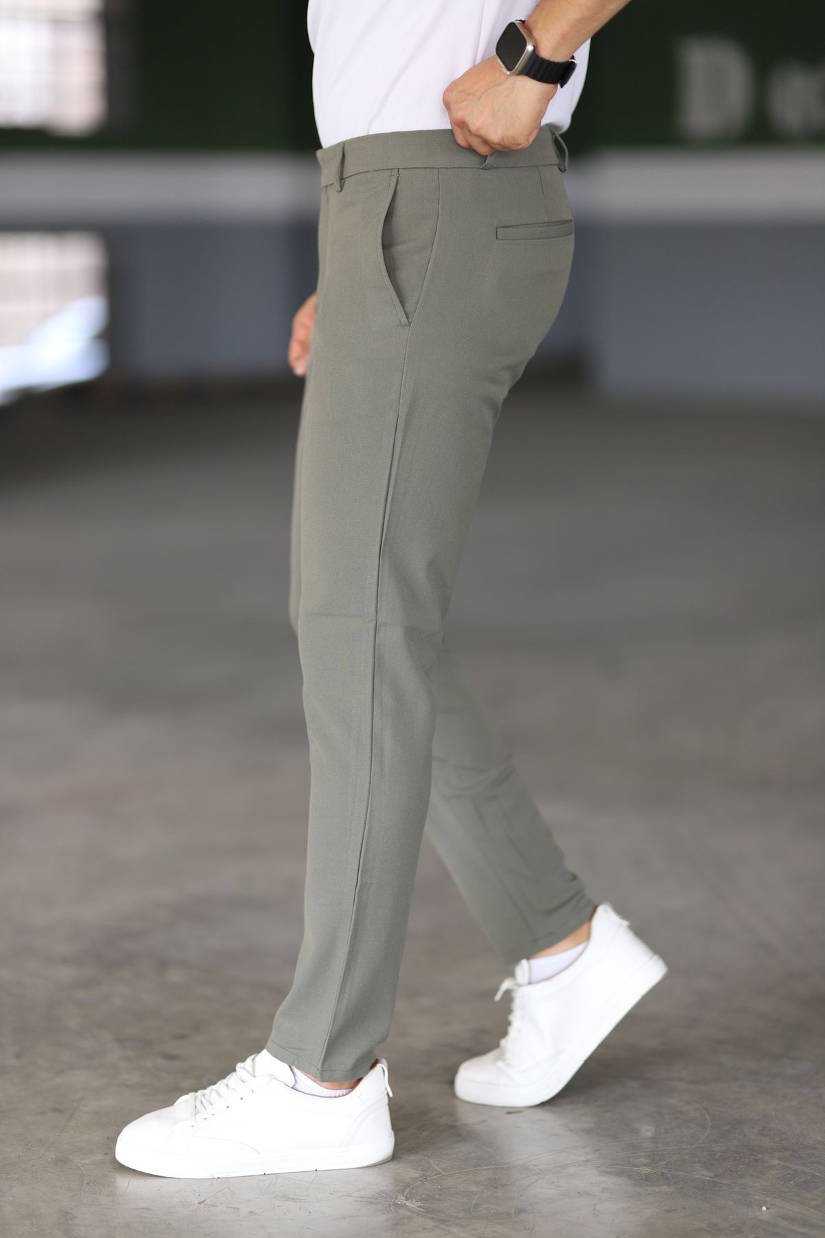 Bürke Erkek Zeytin Yeşili Renk Kaliteli Esnek Likralı Kumaş Bilek Boy Pantolon