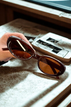 Butik KAHVE RENGİ GÜNEŞ GÖZLÜĞÜ deri kılıf – silme bezi hediyeli