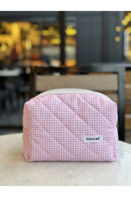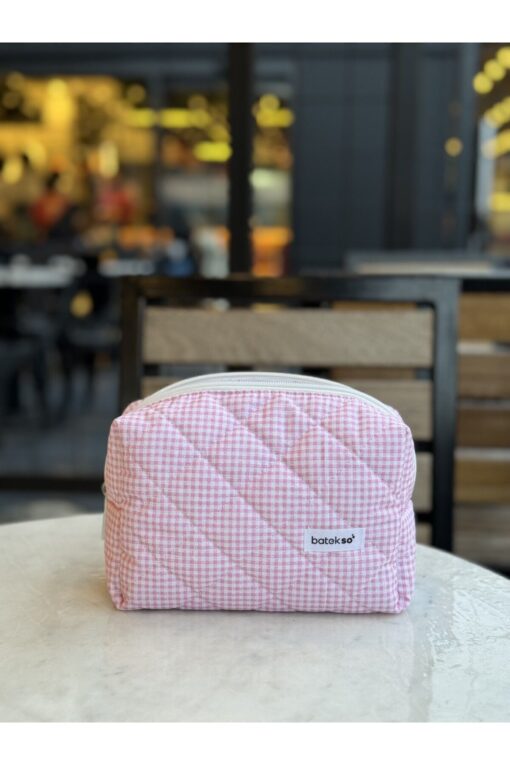 Butiksi Pembe Kare Desenli Makyaj Çantası – Büyük Boy