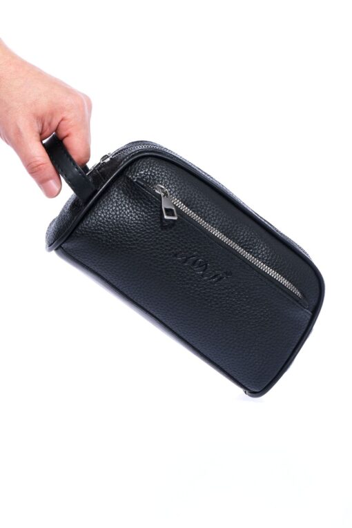 Erzeno Siyah Hakiki Deri Erkek Tıraş el Portföy&Clutch Bakım Çantası