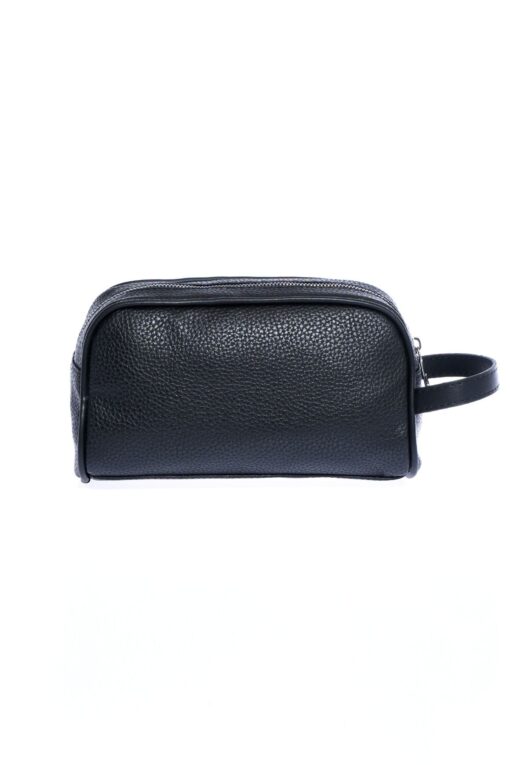Erzeno Hakiki Deri Siyah Erkek El Çantası – Seyahat Çantası – Kozmetik Çantası – Tıraş Çantası