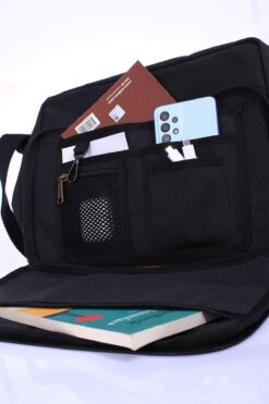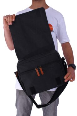 By Hakan GK61 KANVAS POSTACI ÇANTASI ÇOK BÖLMELİ ÜNİVERSİTE OMUZ ÇANTA MACBOOK TABLET ÇANTA SİYAH