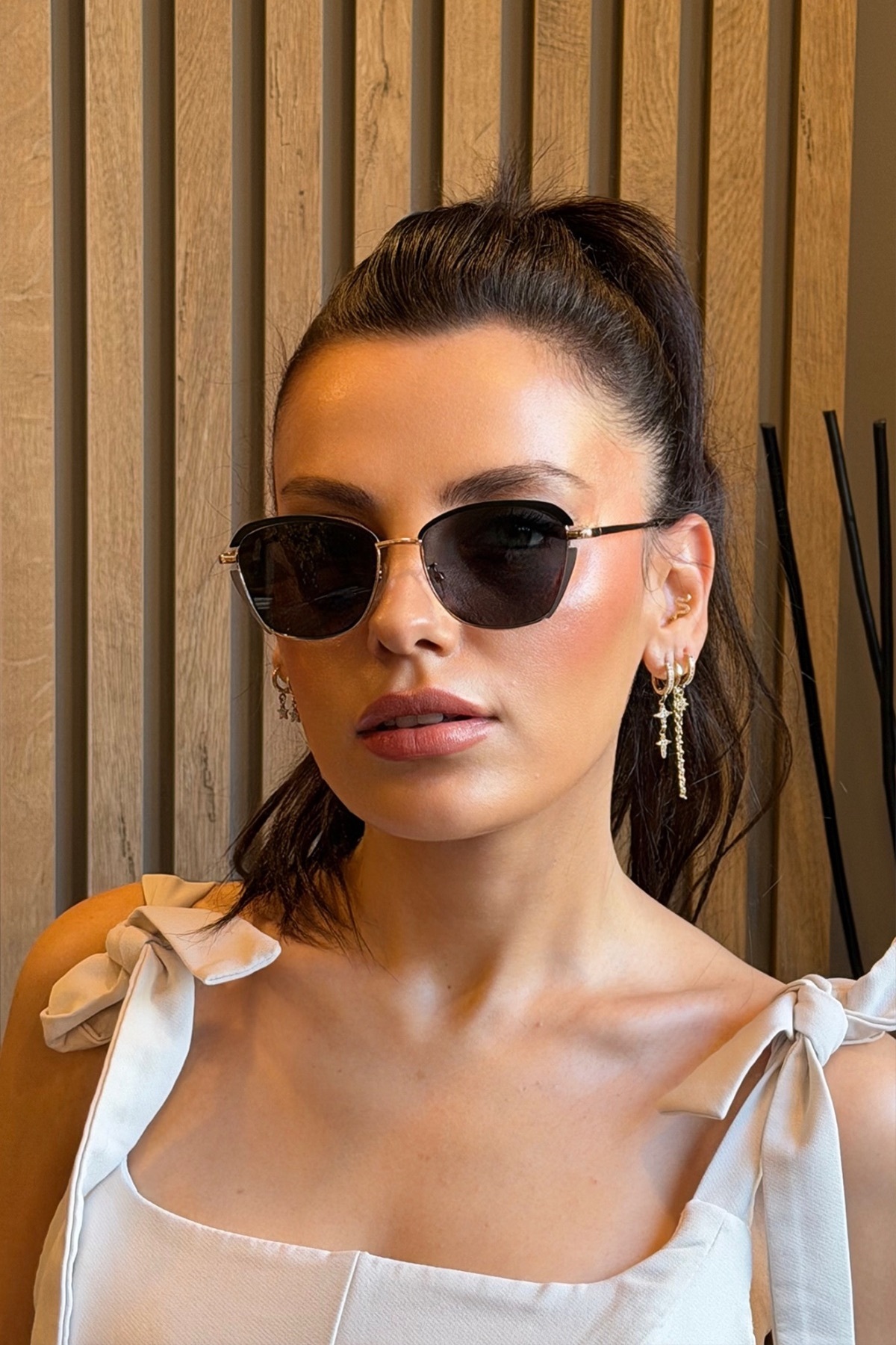Nilu Moda Oval Tasarım Güneş Gözlüğü - Siyah Cam