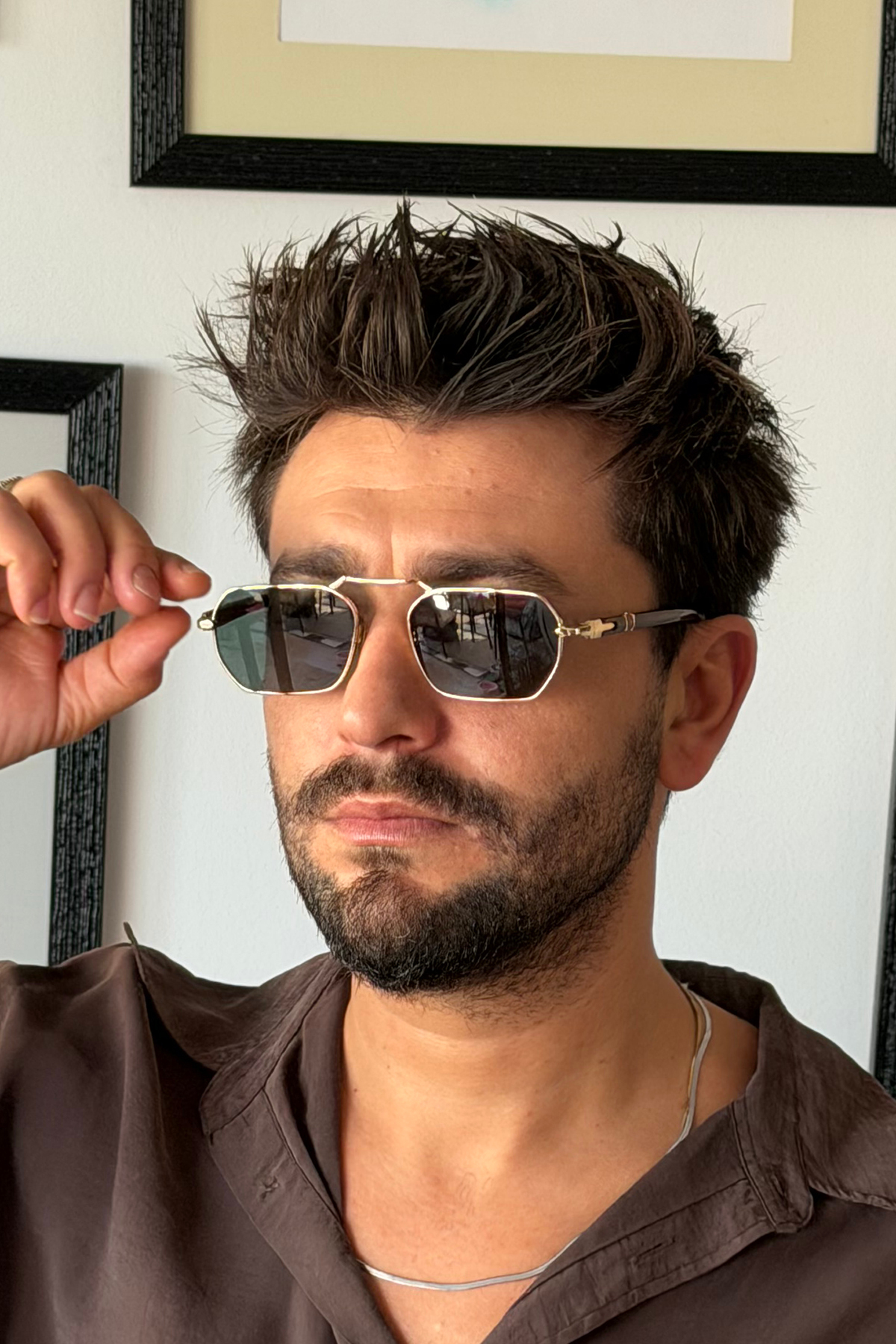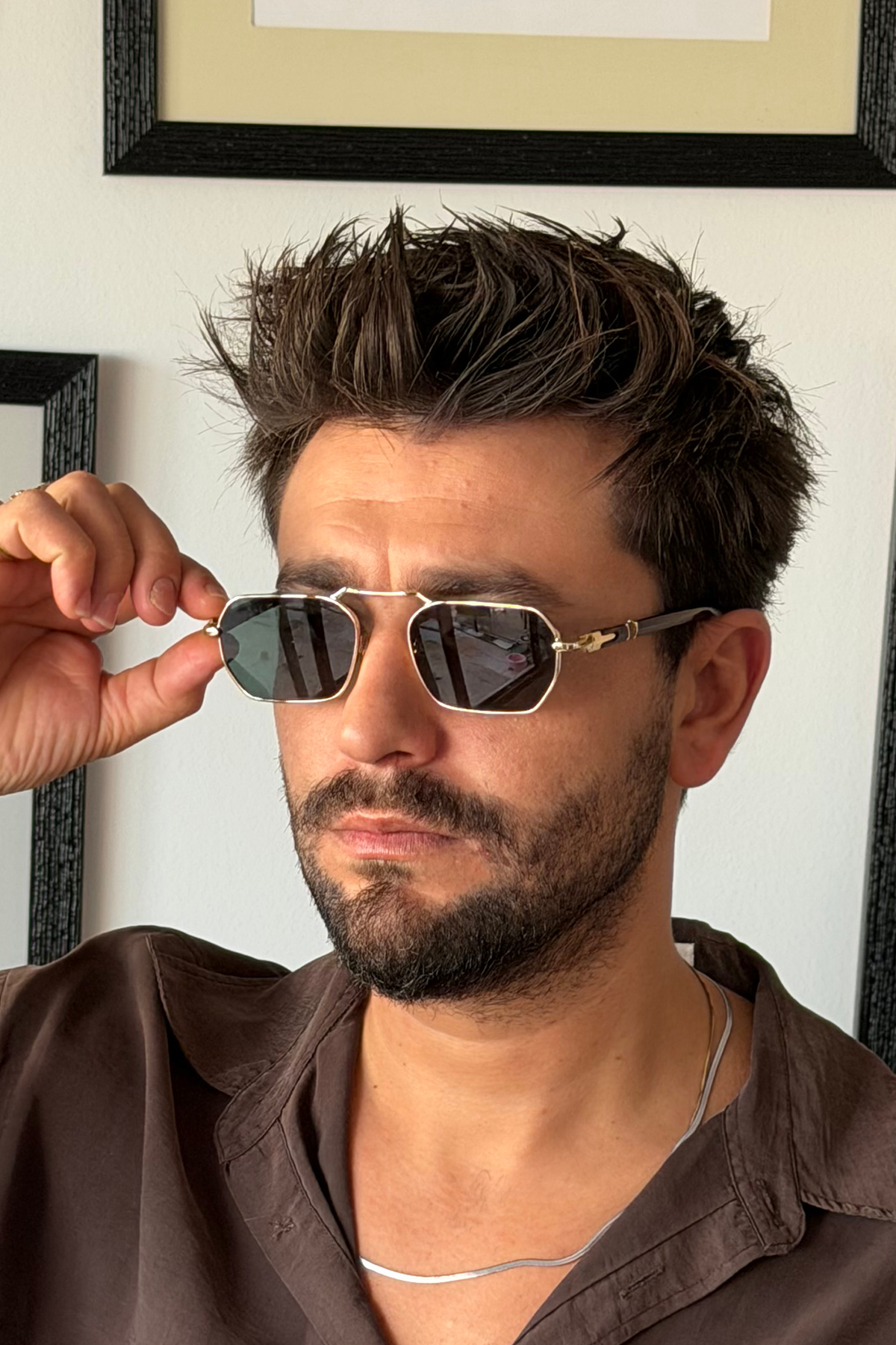 Chunky Frame Gold Metal Çerçeveli Beşgen Unisex Güneş Gözlüğü