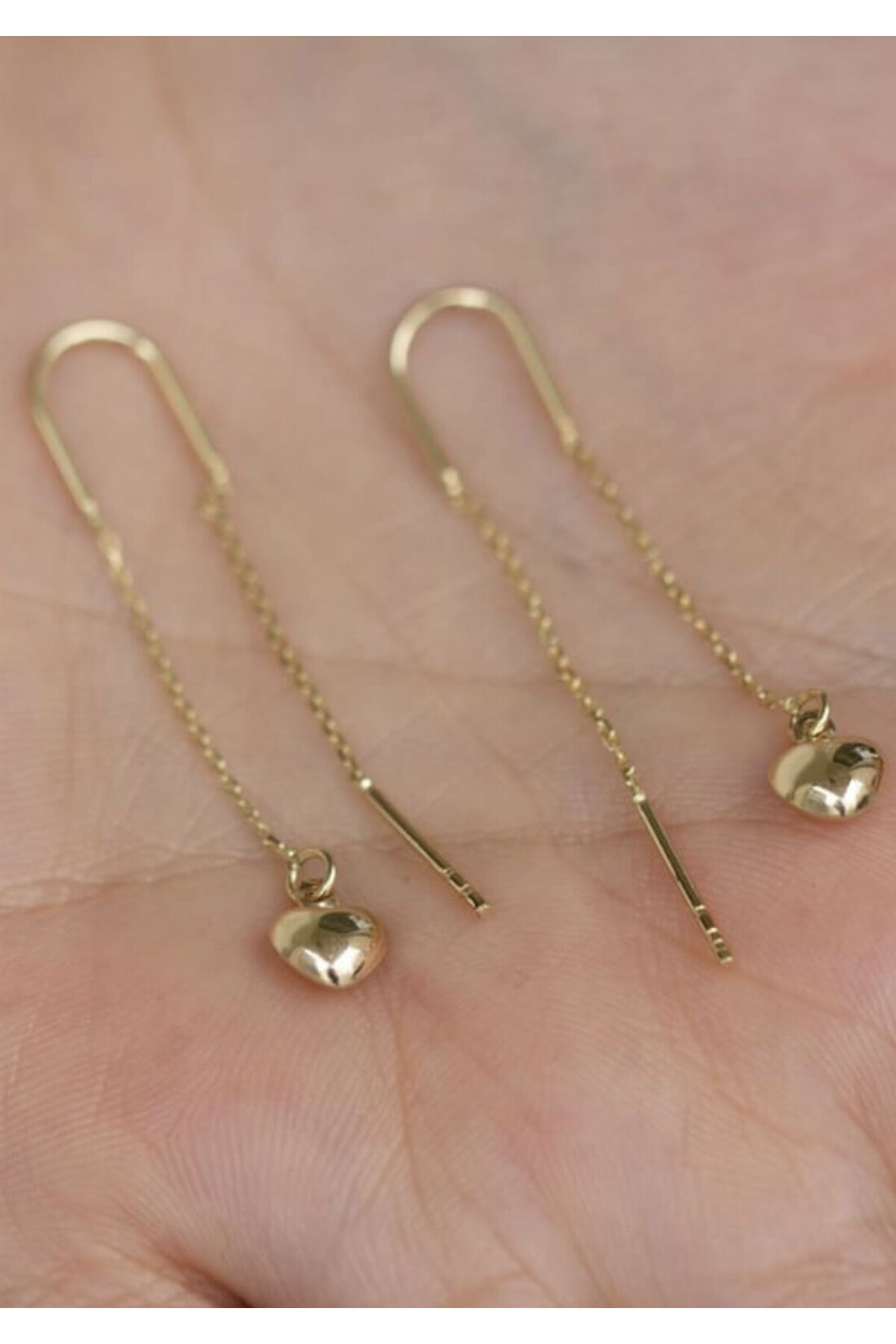 by milo jewellery 14ayar altın kalpli sallantılı küpe