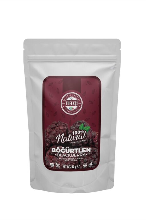 Güneş veya ısıtıcılarla kurutulmuş böğürtlen kurularıyla karıştırılmamalı tamamen içindeki su buharlaştırılıp kurutulmuş ve el değmeden kurutulmuştur.