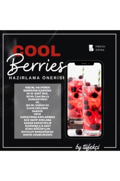Servis Önerisi: By Tüfekçi Berry Hibiskus Konsantresinden 7 Cl karıştırma kabına dökülür 330 ml bardağınız kadar buz (8-9 adet) 170ml su ve 5 parça böğürtlen kurusu haznenin içerisine atılıp karıştırılır.