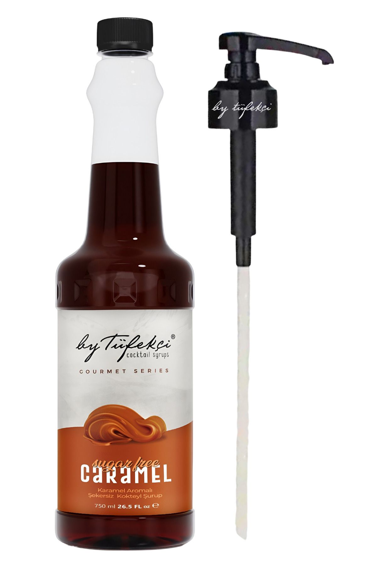 By Tüfekçi Gourmet Series Karamel Aromalı Şekersiz Kokteyl, Pasta Ve Kahve Şurubu 750 ml Şurup Pompası