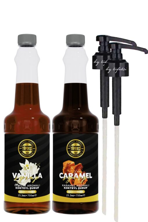 By Tüfekçi Kahve Kokteyl Şurubu Karamel ve Vanilya ile Şurup Pompası Avantajlı 2’li Paket ile kahve keyfinize lezzet katın! Her yudumda karamel ve vanilya şuruplarının tadını çıkarın, içeceğinizi veya tatlılarınızı daha özel hale getirin.