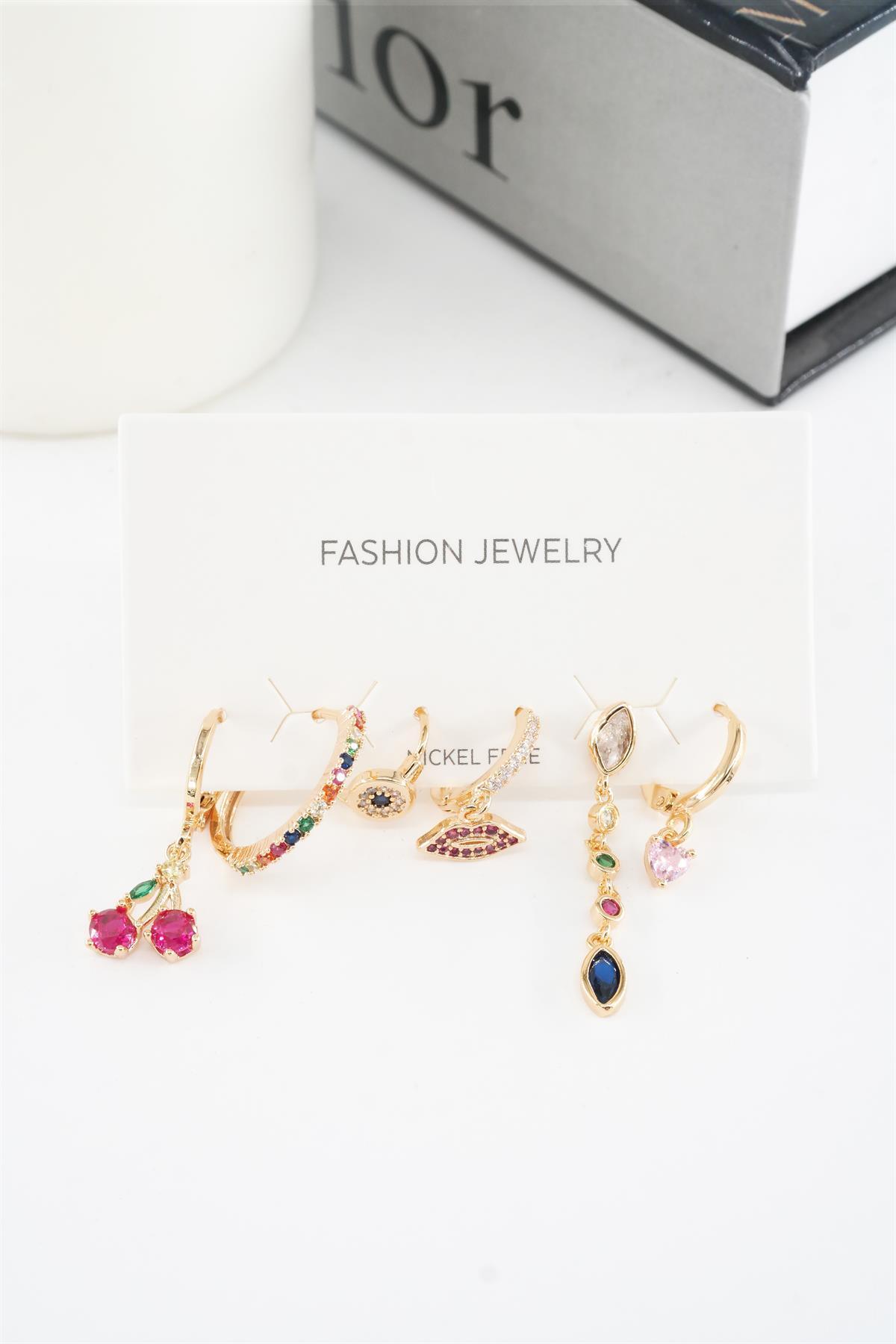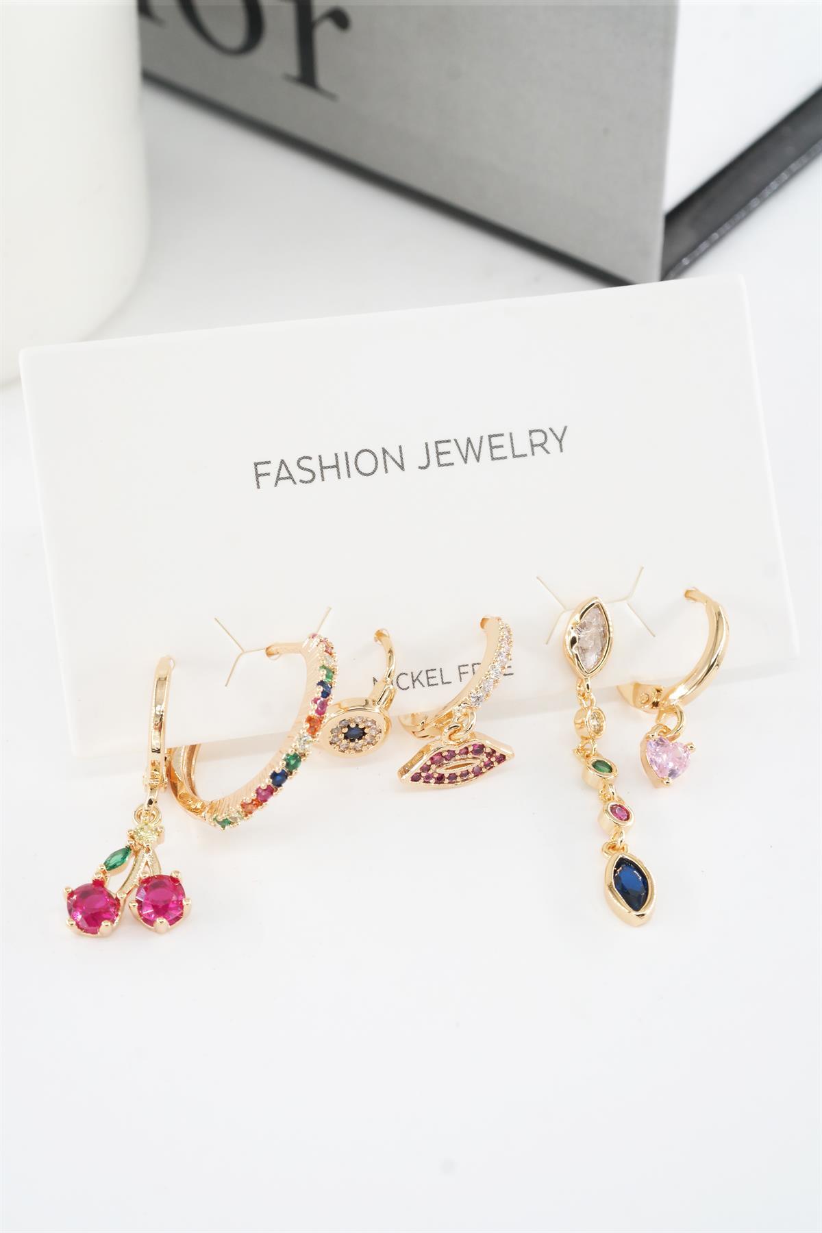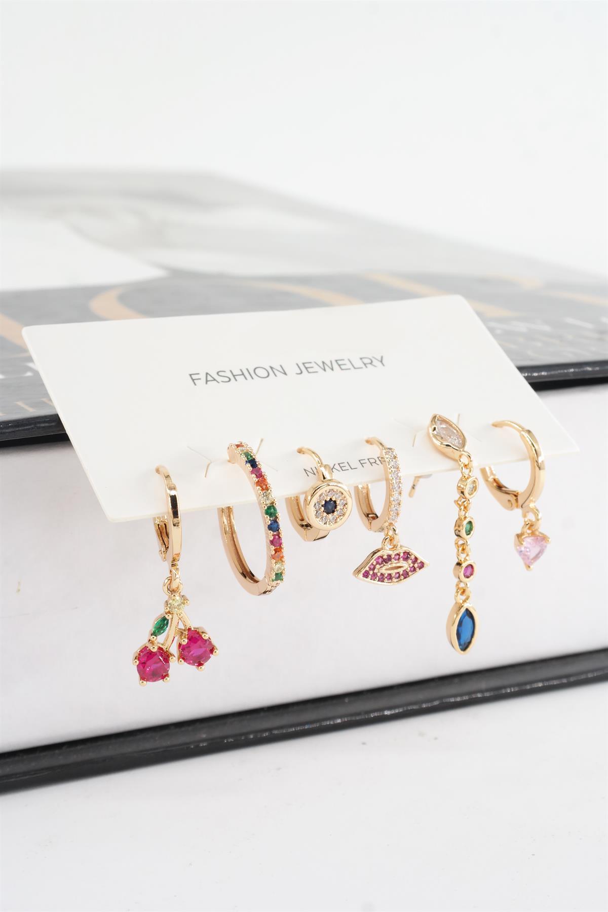 By Zeyna Aksesuar Kadın Vip Seri Mix Zirkon Taşlı 6’lı Küpe Seti