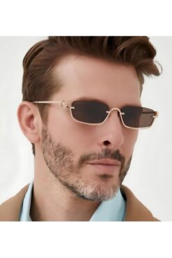 Angel Eyes Small Kare Gold-Altın Çerçeve Kahverengi Cam Minimal Güneş Gözlüğü Yüksek Kalite CE Belgesi