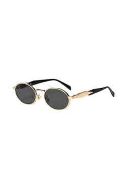 Chunky Frame Kemik Round Oval Unisex Siyah Metal Sap Güneş Gözlüğü