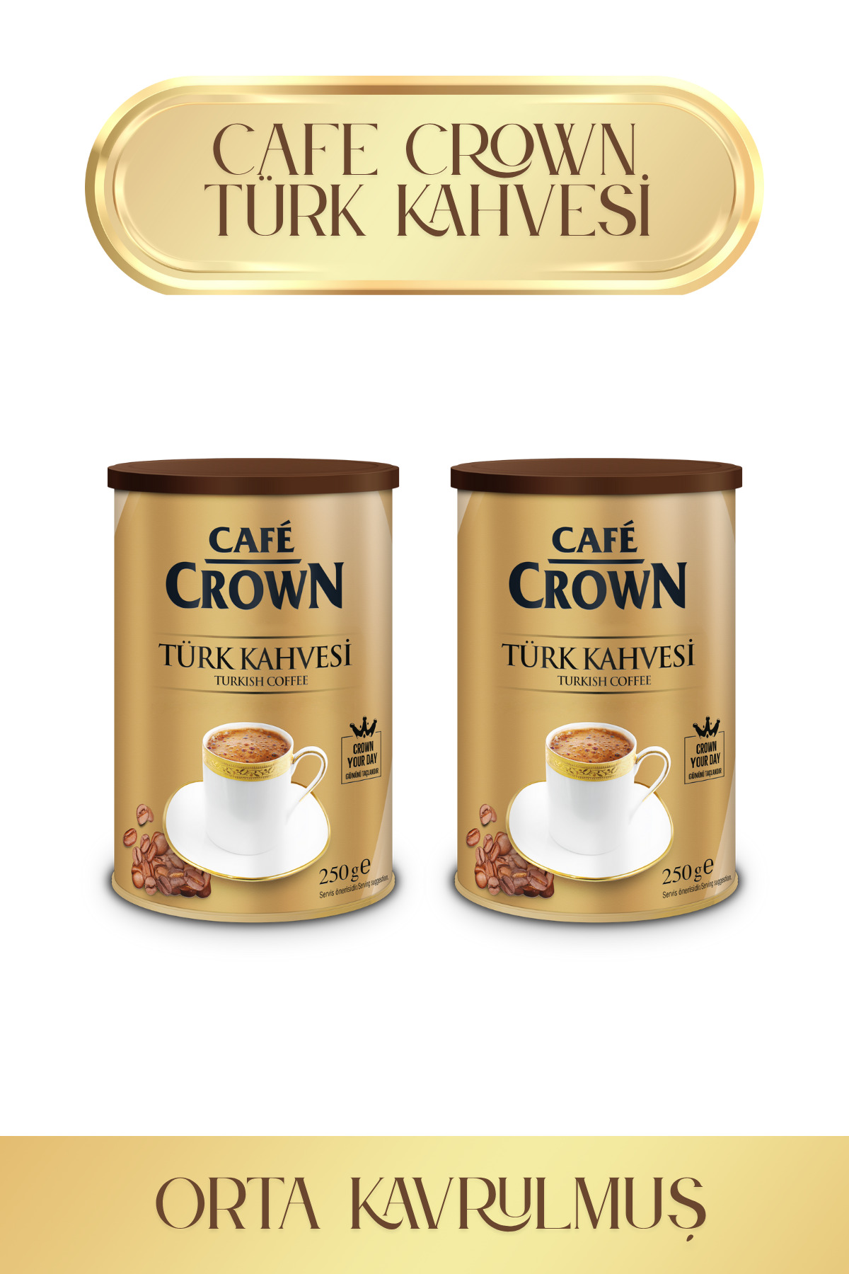 Cafe Crown Nitelikli Türk Kahvesi 500g Metal Kutu %100 Arabica Kahve Çekirdeklerinden (2 ADET X 250G)