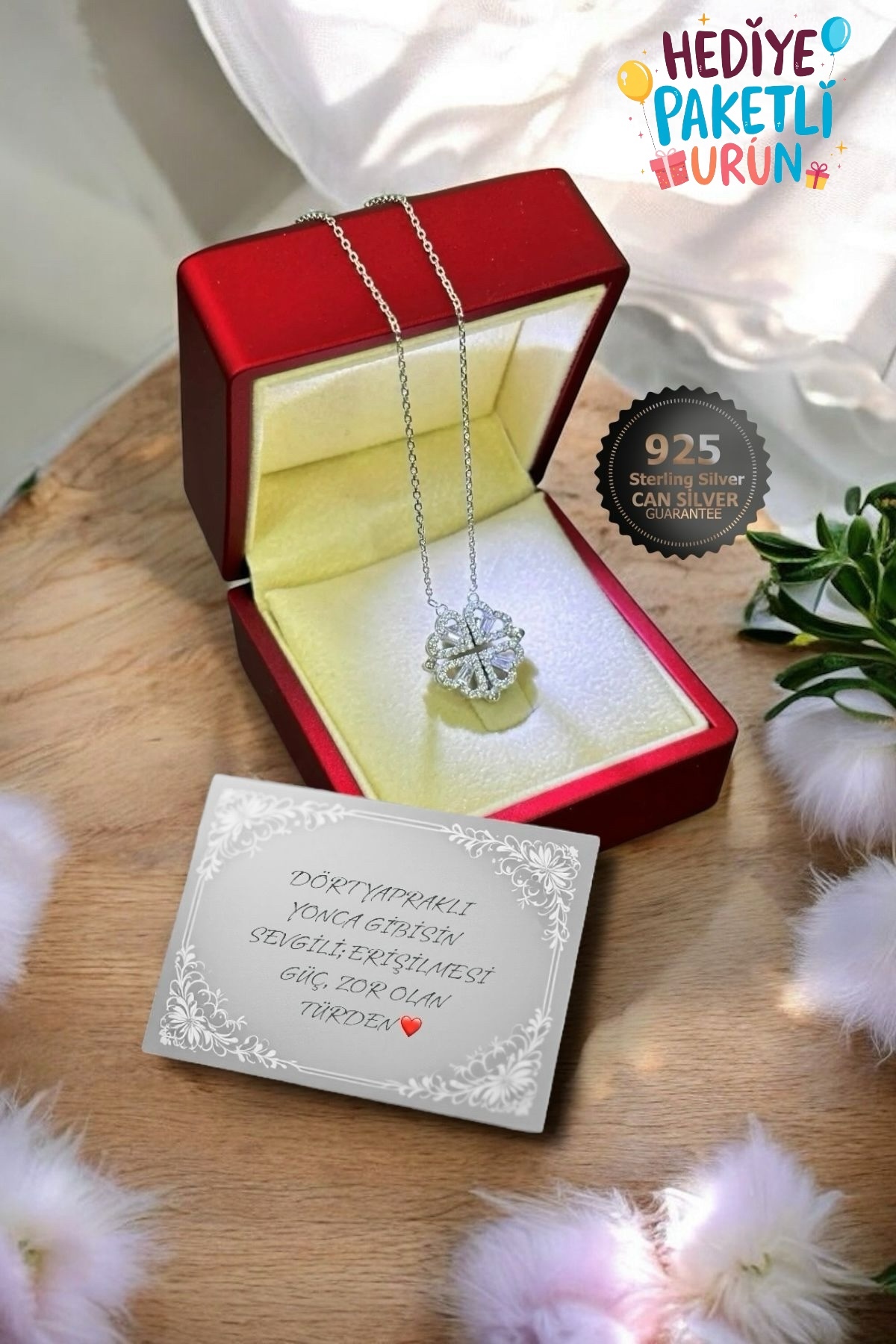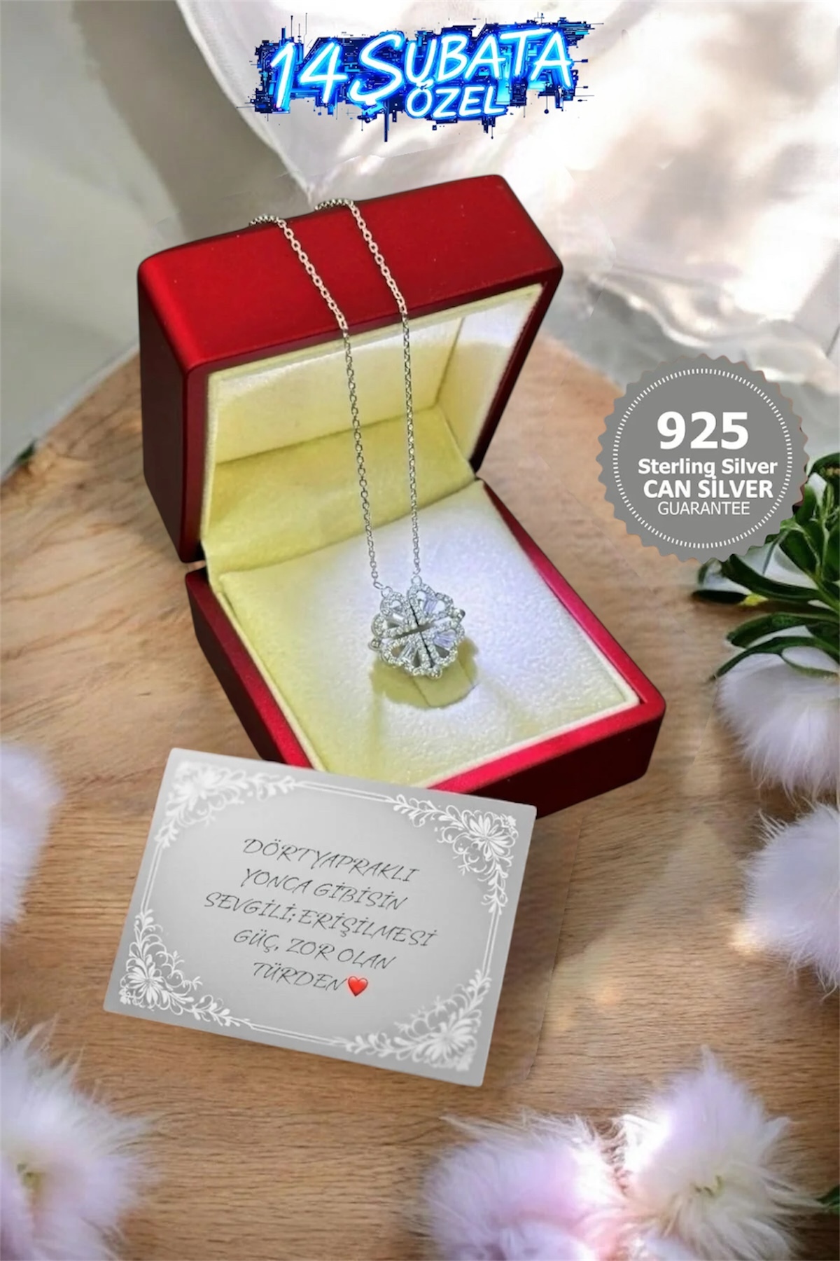 CAN SİLVER Aşk Kolyesi | 925 Ayar Gümüş Mıknatıslı Açılır Kapanır Yonca Kolye-hediye Paketli-14 Şubat Özel