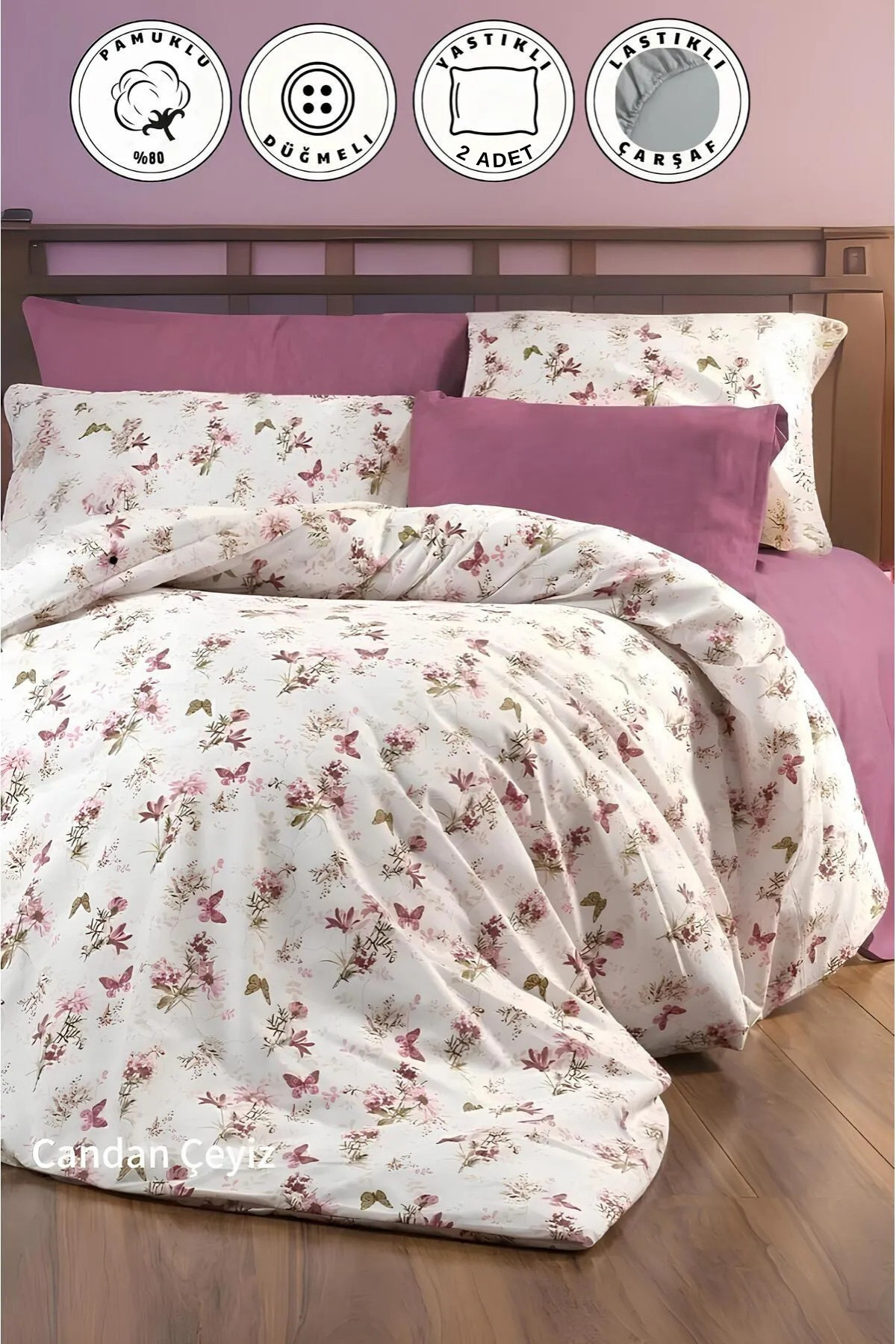 CANDAN ÇEYİZ Lastikli Çarşaflı Çift Kişilik Nevresim Takımı