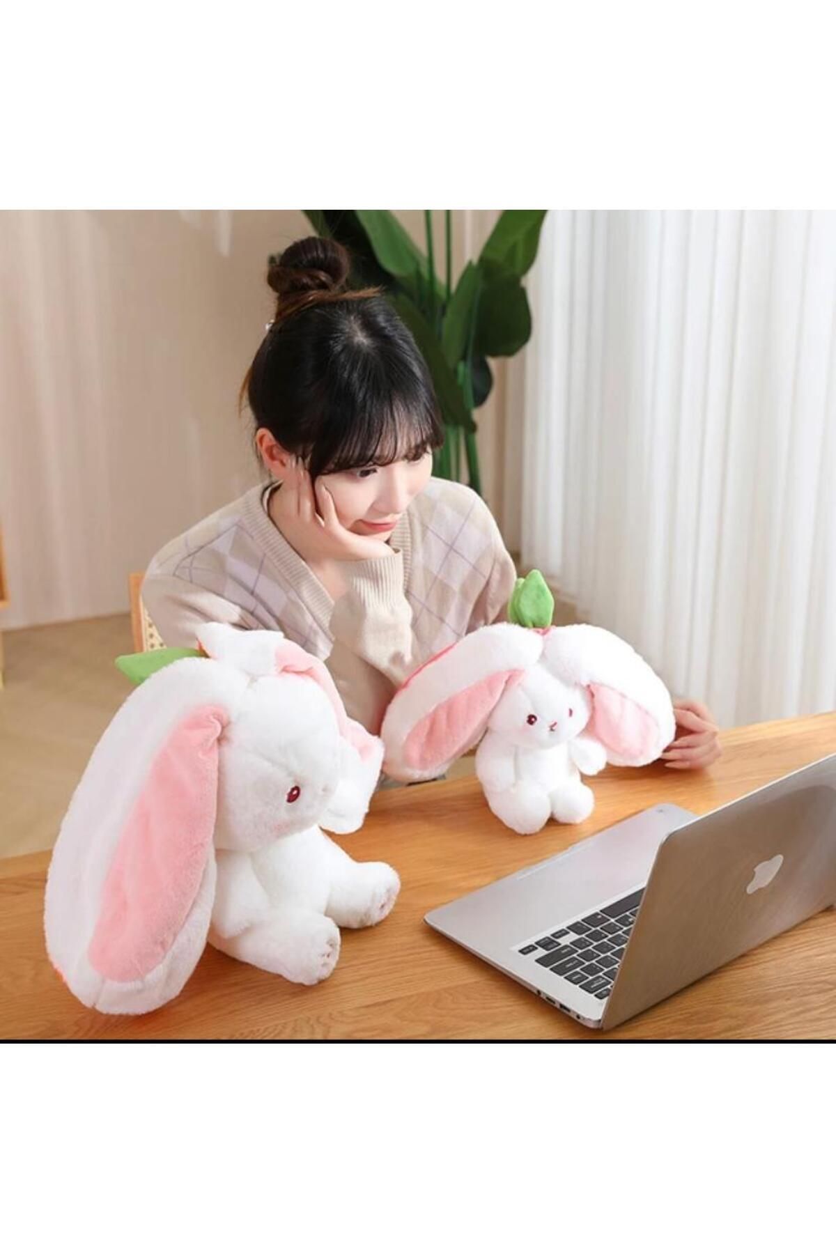 Canestar Sevgiliye Özel Hediye Pembe Çilek Tavşan Özel Tasarım Fermuarlı Yapısıyla Hem Çilek Hem Tavşan