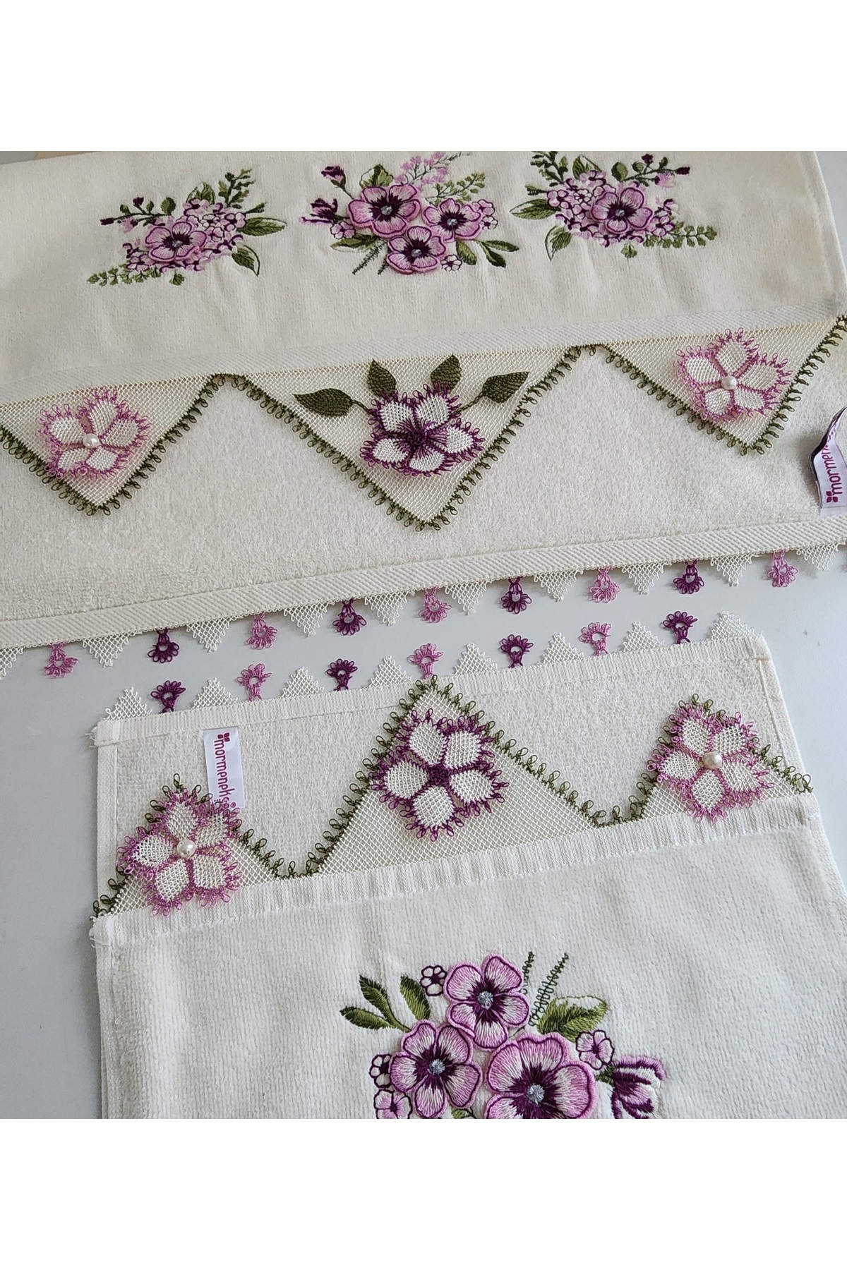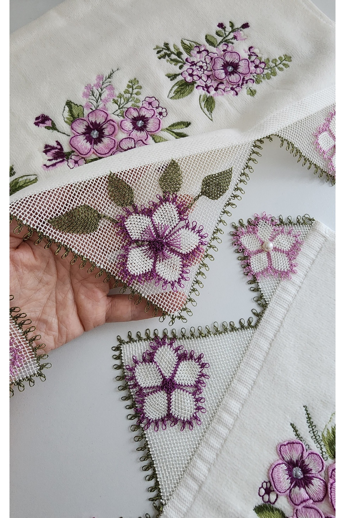Canya El yapımı iğne oyalı el havlusu ve mutfak havlusu takımı