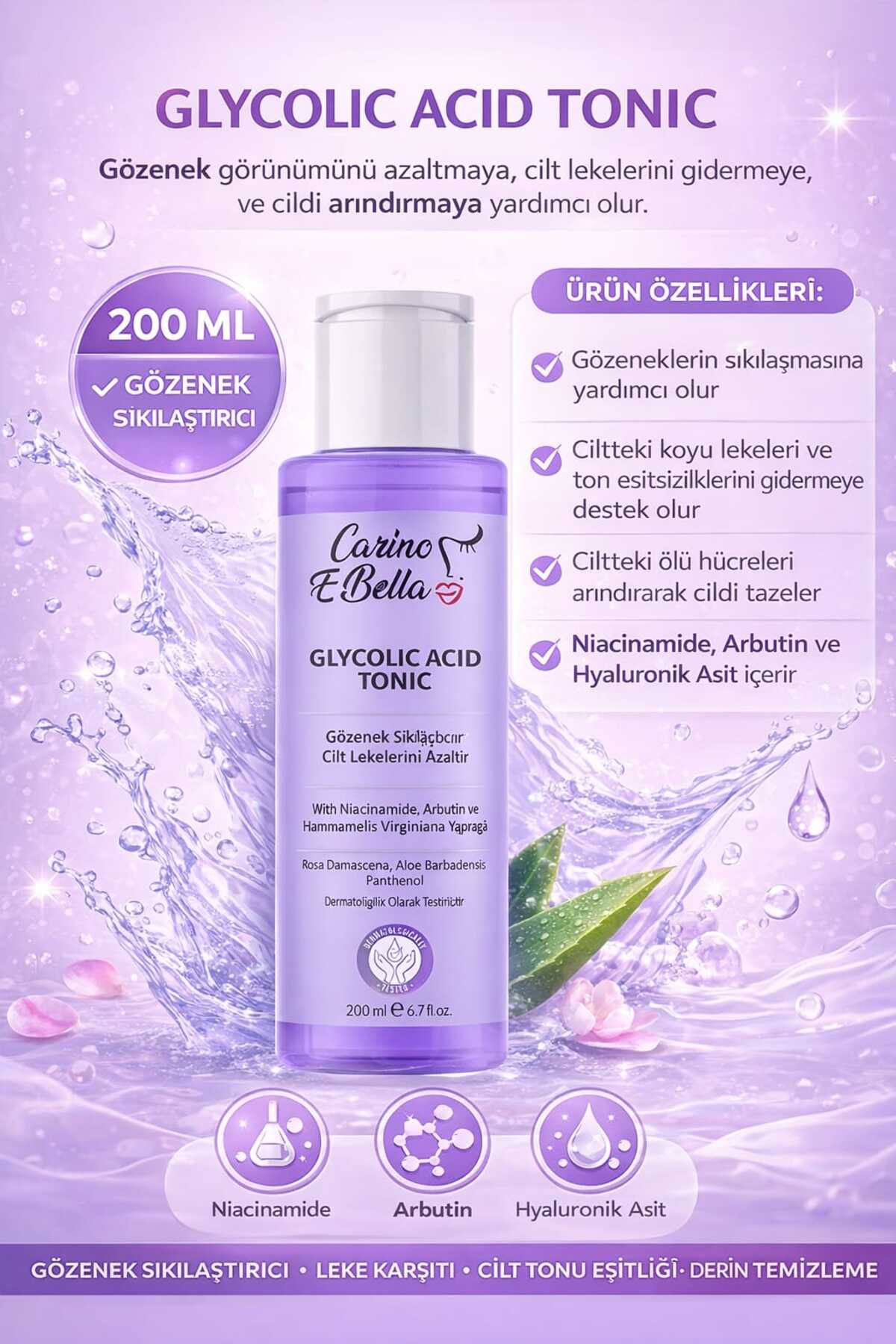 Carino E Bella Canlandırıcı Ve Gözenek Sıkılaştırıcı Leke Karşıtı Tüm Cilt Tipleri AHA Glikolik Asit Tonik 200 Ml ürünü ucuz fiyat, hızlı kargo imkanı ile hemen sitemizden sipariş verin.