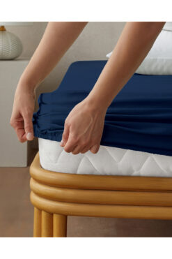 English Home Düz Pamuklu Tek Kişilik Lastikli Çarşaf 100×200 cm Gece Mavisi