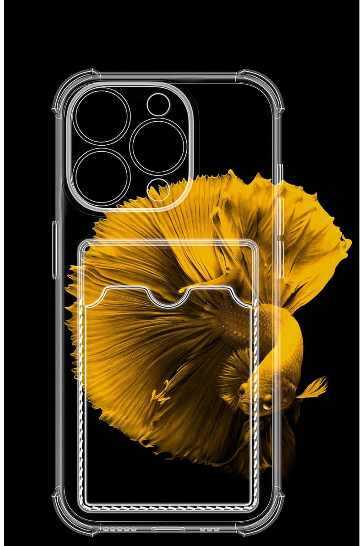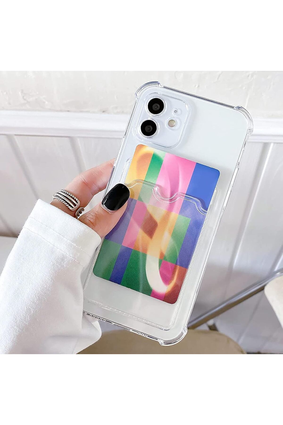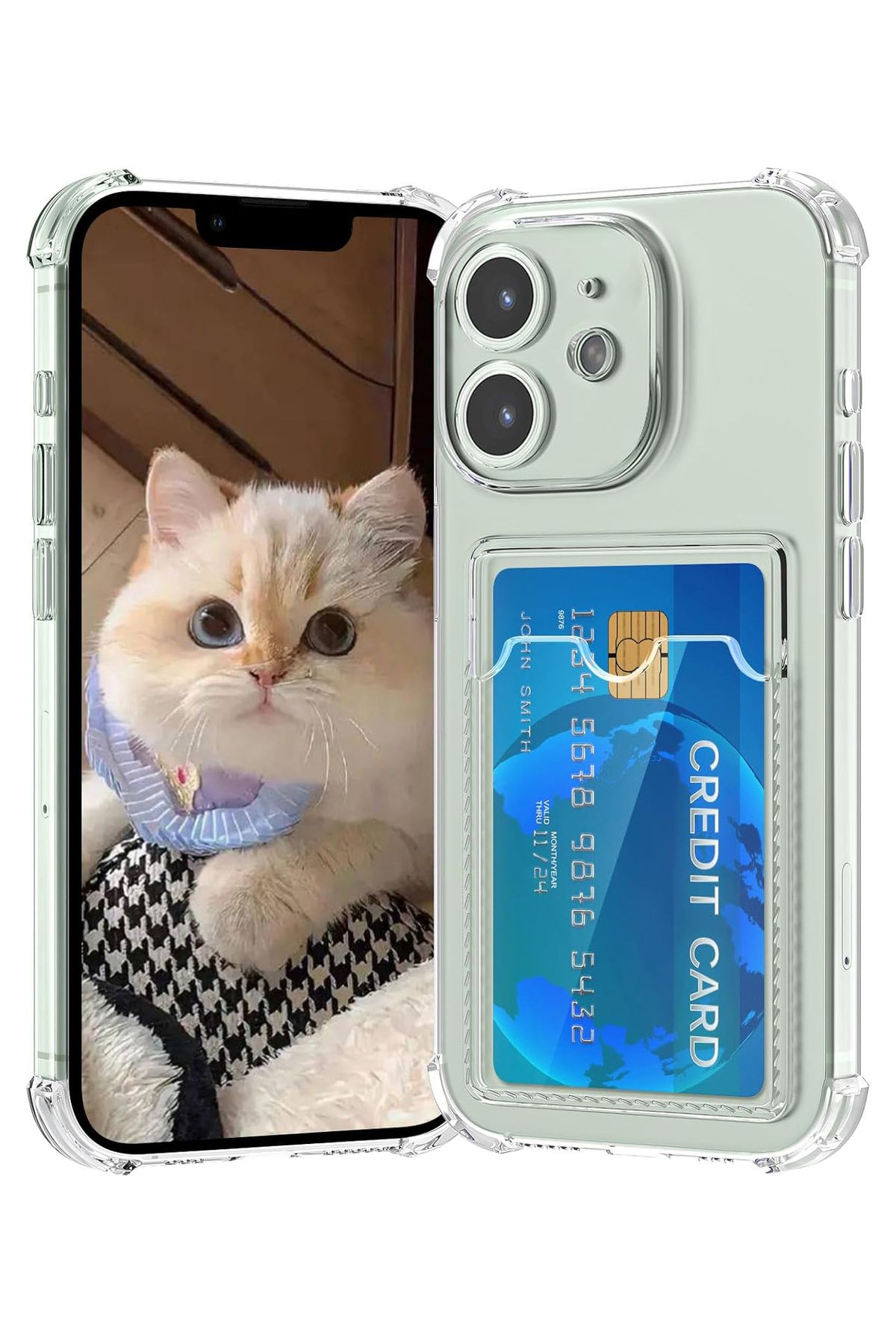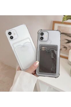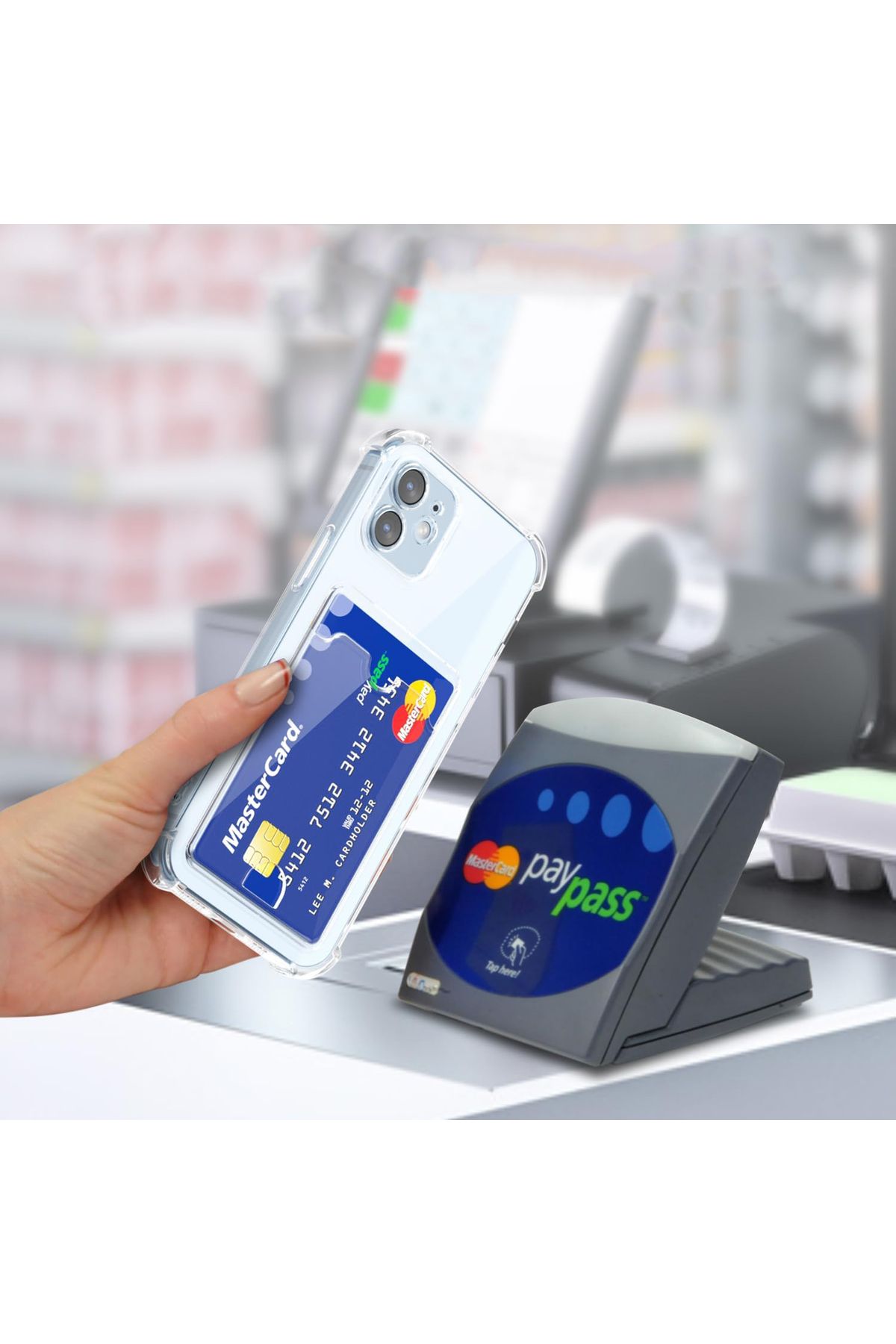 iPhone 11 Uyumlu Köşeleri Çıkıntılı Kartlıklı Şeffaf Kılıf
