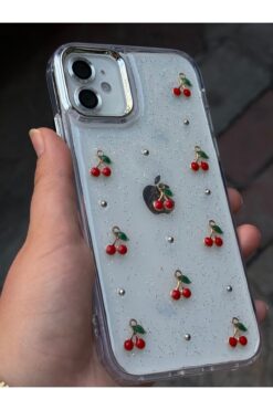 – iPhone 11 modeline özel tasarlanmış, minik kiraz işlemeleriyle süslenmiş simli parlak detaylara sahip epoksi kılıf.