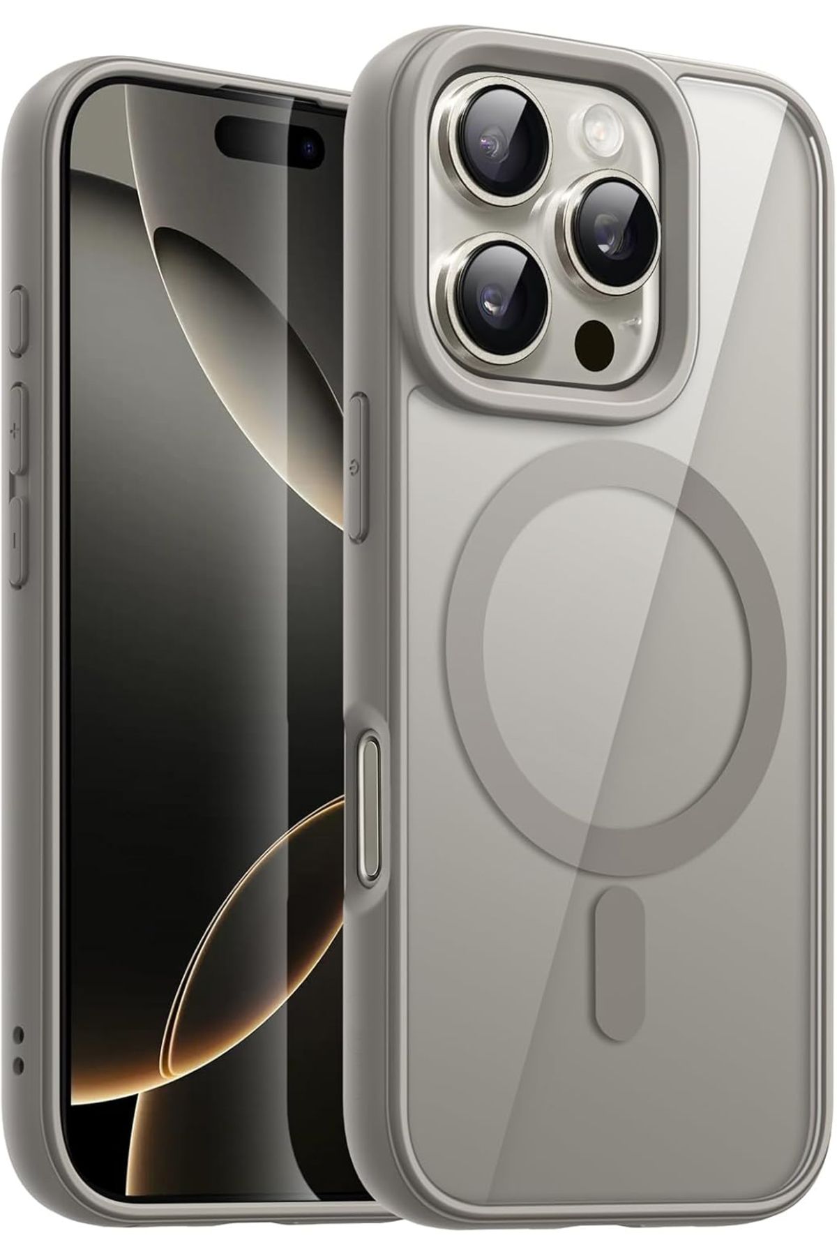 Fibaks İphone 16 Pro Max Uyumlu Kılıf Magsafe Wireless Kablosuz Şarj Destekli Sert Şeffaf Darbe Emici Kapak