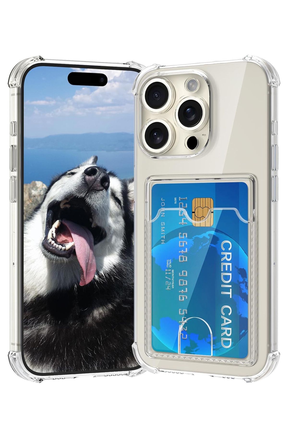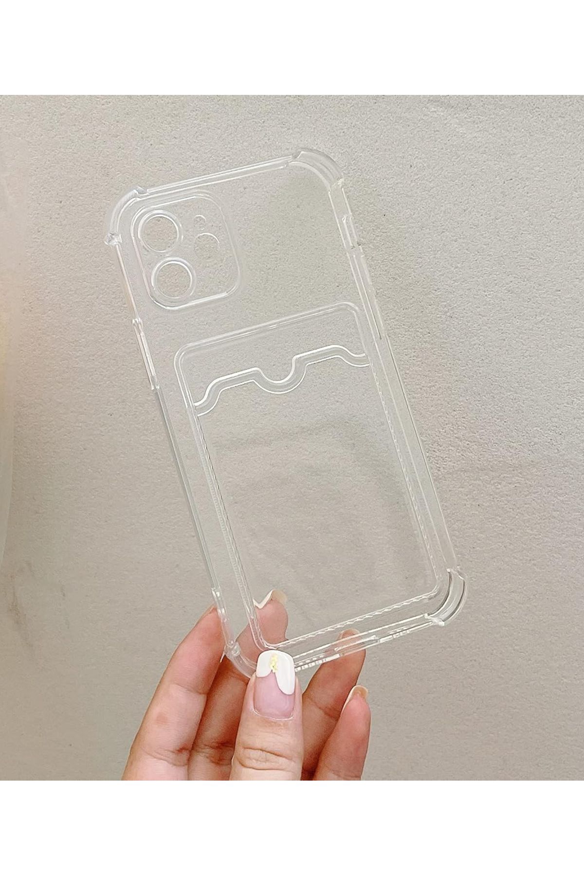 iPhone 16 Pro Max Uyumlu Köşeleri Çıkıntılı Kartlıklı Şeffaf Kılıf